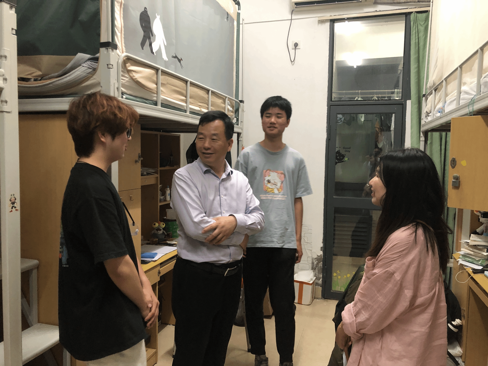 为深入了解五一假期学生的学习生活情况,进一步强化安全教育与日常管理,4月29日至30日,院党委副书记蔡虎堂、王旖旎带领辅导员分别开展了学生宿舍、研究生工作室走访检查工作,并为留校学生送去节日关怀。
