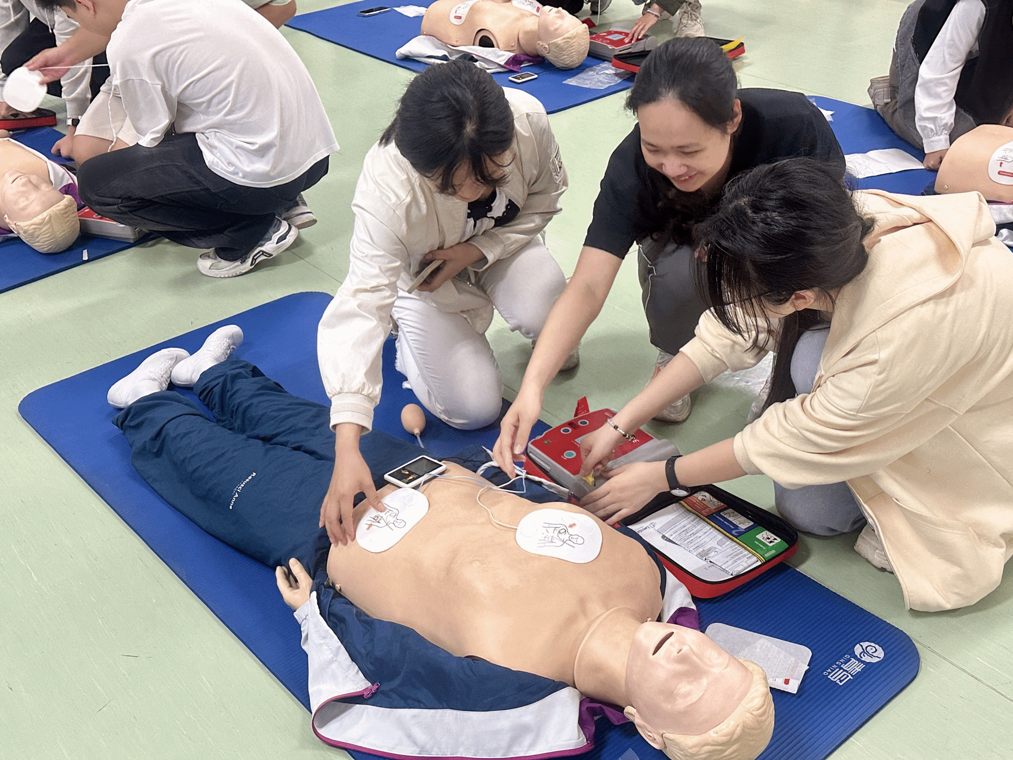 在AED自动体外除颤器的使用教学环节,老师对AED的适用情况及规范操作展开讲解,并指导同学们完成实操训练,以熟练掌握“开机-贴电极-听提示”的标准化操作步骤。此外,针对成人气道梗塞场景,老师专项讲解海姆立克急救法,通过分解动作要点包括其站位、手势和发力方式,帮助同学们掌握应对突发窒息的有效急救技能。