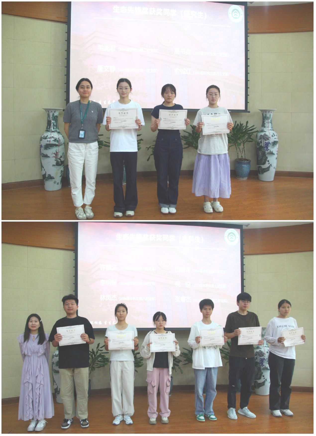 随后,黄怡平和肖莉君为“生态先锋奖”颁奖,曹京柱为“先锋支部奖”颁奖,朱祎濛、王旖旎为“2024年度厦门大学优秀共青团员”颁奖,蔡虎堂为“2024年度厦门大学五四红旗团支部及优秀团支部书记”颁奖。