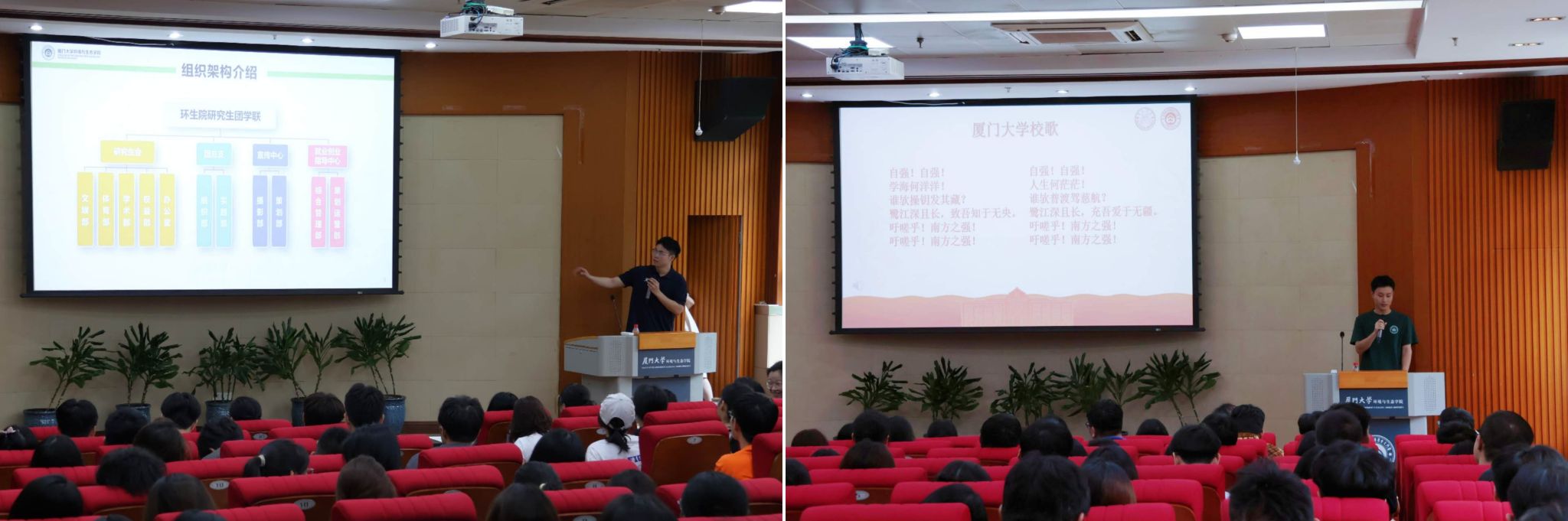 构建环生温暖集体。学院研究生团学联在入学教育周期间带领新生们学唱校歌,并开展纳新宣传活动,系统介绍研究生团学联的组织架构与一系列品牌活动,营造昂扬向上、积极友爱的集体氛围,激发新生们的参与热情,以“温暖集体”构建和谐社群关系,强化新生们的归属感。