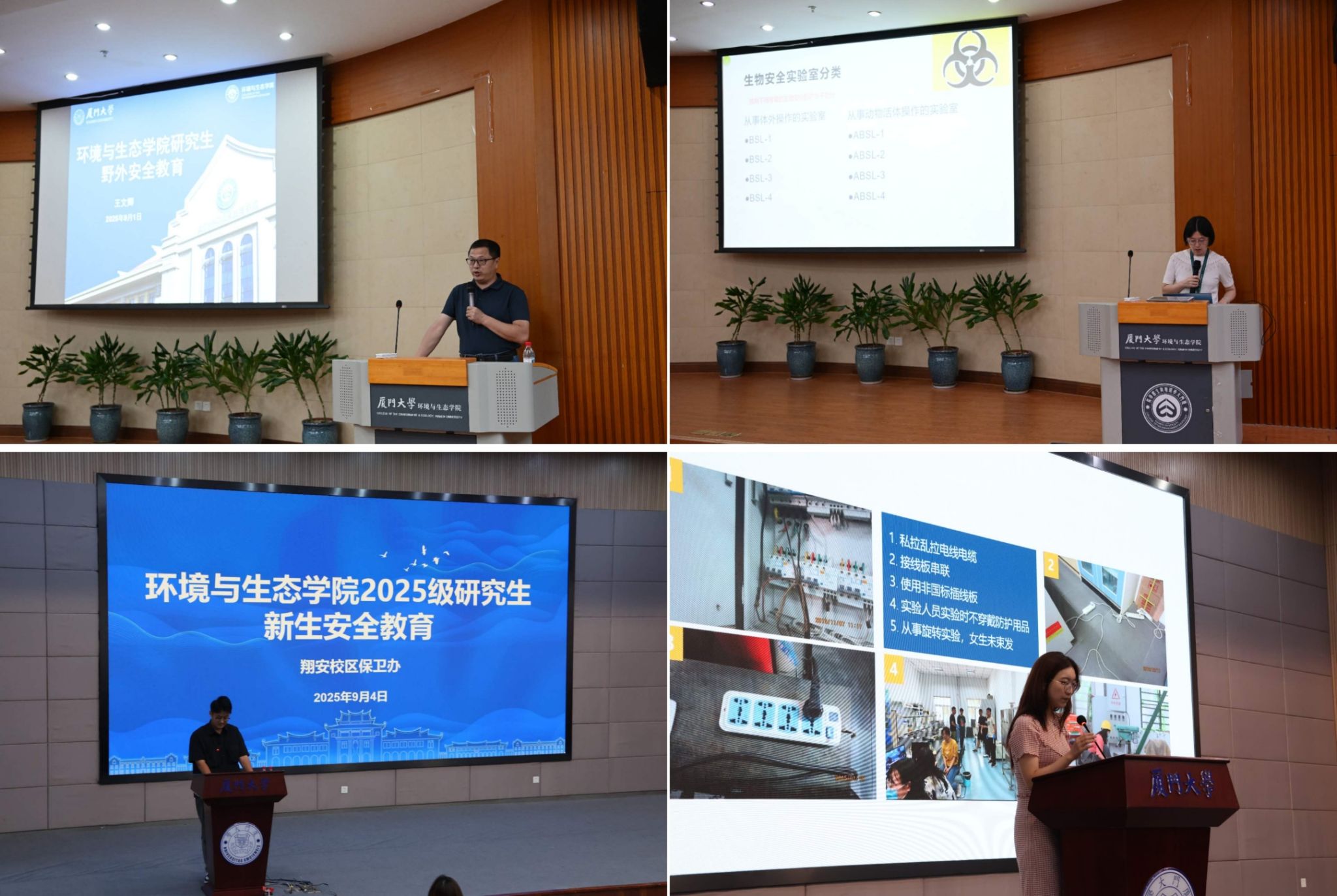 筑牢安全防线。学院注重场景化专业安全教育,邀请王文卿教授结合实际案例,重点讲解野外采样与出海科研作业的潜在风险点和安全防护要领,提高研究生风险预判与自我保护能力;邀请实验中心工程师林琳着眼于实验室安全,围绕设备操作规范、化学品管理、个人防护及应急处理等内容开展系统培训,为顺利开展科研实验筑牢安全防线。学院还联合校区保卫办、实验办开展国家安全、反诈防骗、禁毒宣传、校园交通等综合性安全教育,进一步增强新生的安全防范意识。