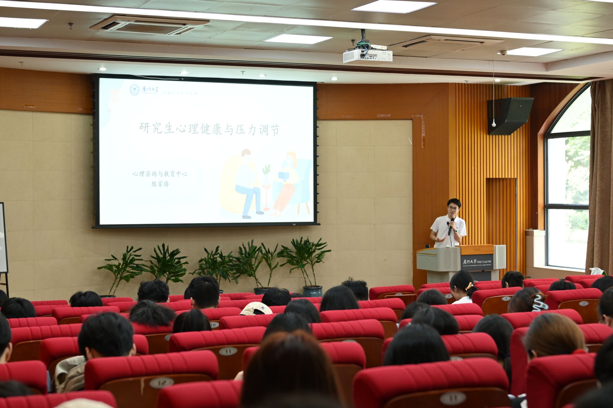 培育健康素养。学院将生命健康关键能力培训融入入学教育环节,组织新生收看由厦门大学附属翔安医院国家临床教学培训示范中心和厦门市中心血站联合开展的心肺复苏等急救技能培训与无偿献血知识宣讲,提升学生急救知识与健康意识。学院还邀请心理咨询与教育中心陈家侨老师带来《研究生心理健康与压力调节》讲座。他用卡牌游戏开场,带领新生破解环境转换中的心理困惑,帮助大家正确看待研究生阶段遇到的新问题,并提供科学的情绪管理与压力调适方法。