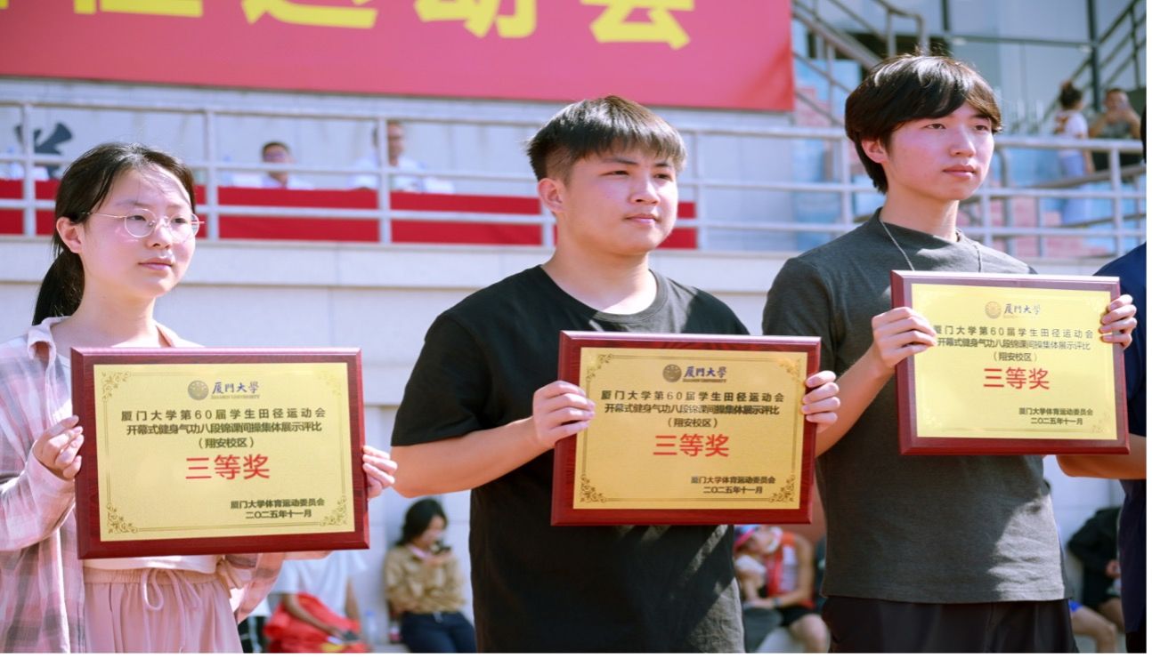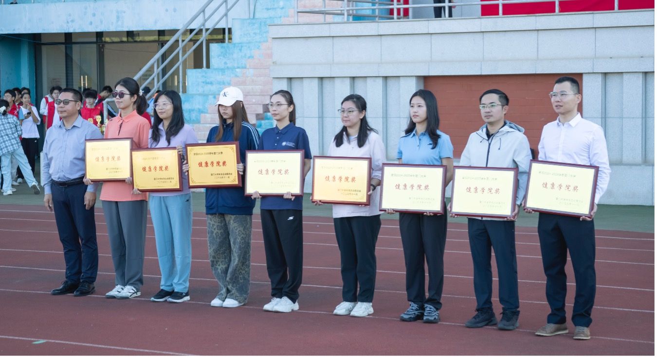 11月7日至8日上午,我校第60届学生田径运动会在翔安校区一期田径场隆重举行。我院运动健儿们踔厉奋发,力争上游,各部门同心协力,最终取得翔安校区本科生团体总分第8名,研究生团体总分第8名、学院团体总分第8名的佳绩,以及健身气功八段锦展示三等奖,并荣获体育道德风尚奖、健康学院等奖项。