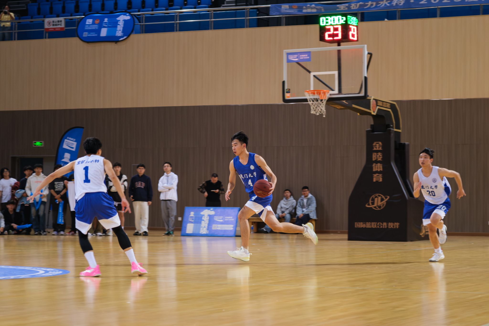 12月20日晚,2025年厦门大学“新生杯”篮球联赛翔安校区决赛在爱秋体育馆打响。此前,我院队伍一路过关斩将,强势闯入决赛,与信息学院男篮展开终极对决。