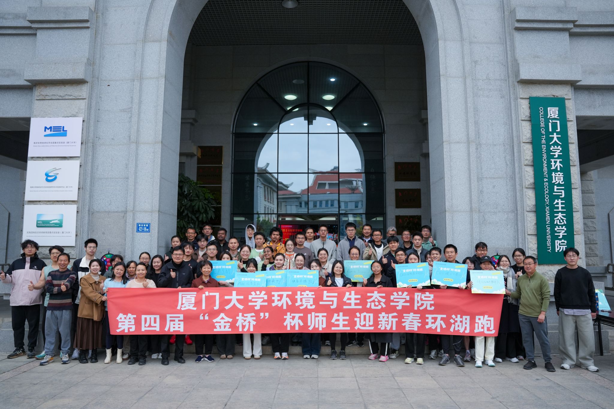 12月26日下午,我院第四届“金桥”杯迎新春环湖跑活动顺利开展。本次活动由学院工会、团委、关工委共同主办,研究生会承办,并得到厦门市金桥科教拥军促进会的大力支持。一场考验团队协作、趣味横生的环湖跑接力竞赛,在60余名师生的欢声笑语中拉开帷幕。