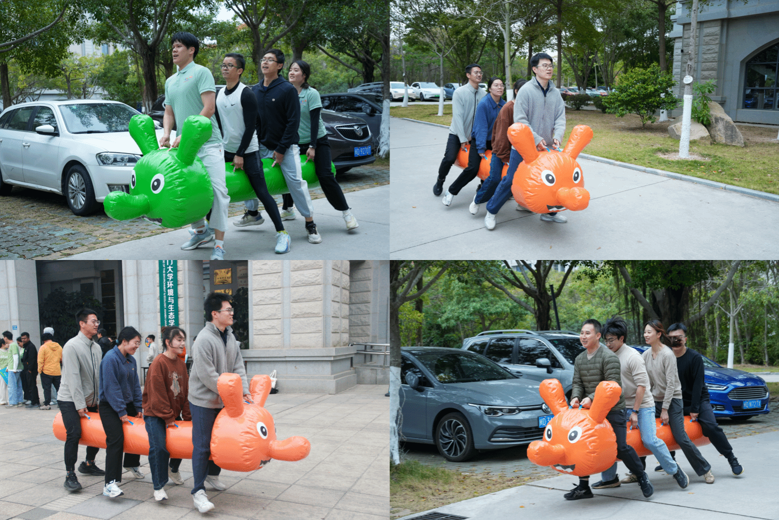 开幕式上,学院工会主席陈荣老师致开场辞,八支参赛队伍以及个人组的选手们热情高涨、蓄势待发。本次团体赛采用接力闯关形式进行,每支队伍需依次完成“趣味游戏→环湖跑→飞天毛毛虫游戏”的循环闯关流程,直至最终抵达终点。