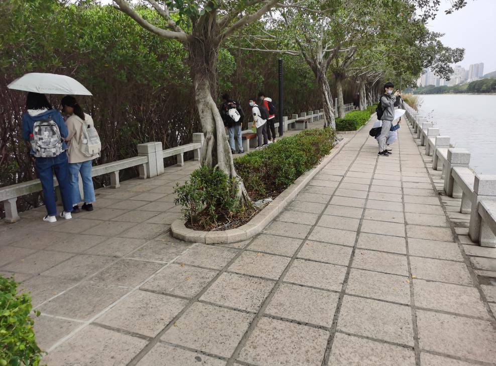 同学们于东门集合,在绿野协会学长的带领下乘公交车前往白鹭洲。同学们到达白鹭洲后开始自由活动,观赏红树林及生活在其中的鸟类。尽管当时下着小雨,同学们的活动热情依然不减,仍积极参与活动。大家运用手机软件识别红树种类、分析垃圾和污染的主要来源,并在公园进行垃圾分拣工作。