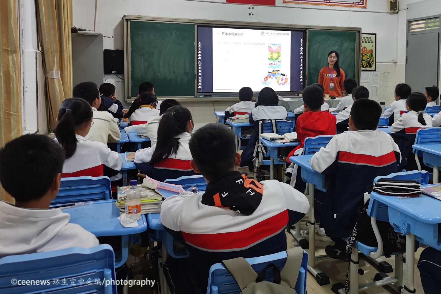 此次活动中,志愿者就光盘行动、垃圾分类、环境与健康、文昌鱼的利用和保护、生物入侵等五个主题分别向五个班级的同学进行宣讲。