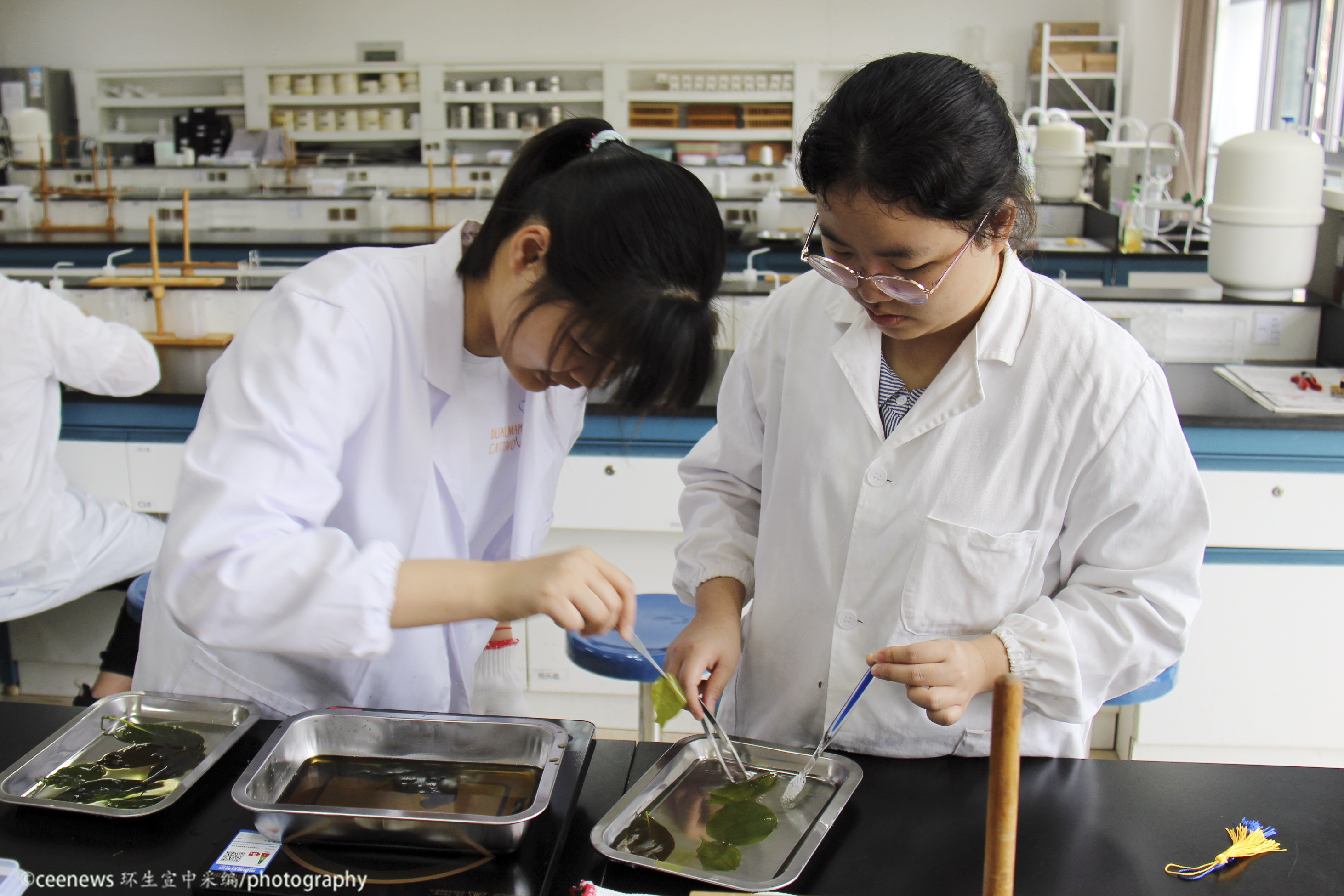 成功分离出叶脉后,志愿者们围在桌边,用染料将叶脉染上颜色。主讲人手把手指导志愿者对染色完毕的叶脉进行塑封、打孔、穿上多彩的流苏,如此一枚叶脉书签便制作完成了。志愿者们纷纷在书签上写下对厦大百年校庆的祝福,作为我院送给学校百年华诞的礼物。
