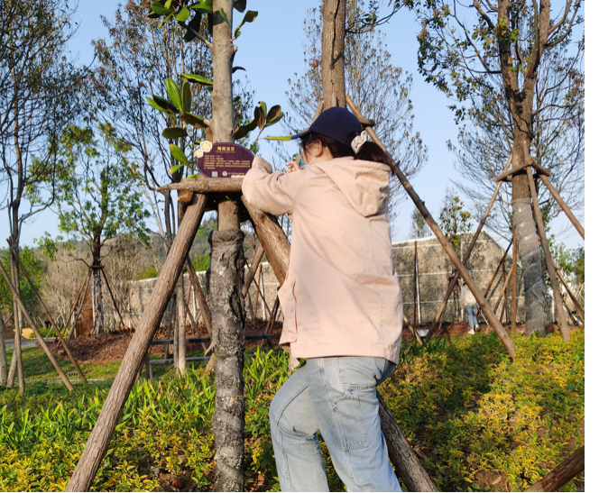 精心设计的植物名牌上注明了植物的名称、科属、产地、用途等信息,使用手机扫码,就能迅速获得该植物相关知识及人文故事。经过同学们的辛勤劳动,八闽园中许多植物都拥有了自己的“姓名牌”,有了这些名牌,大家对校园植物的认识将不再是“走马观花”。