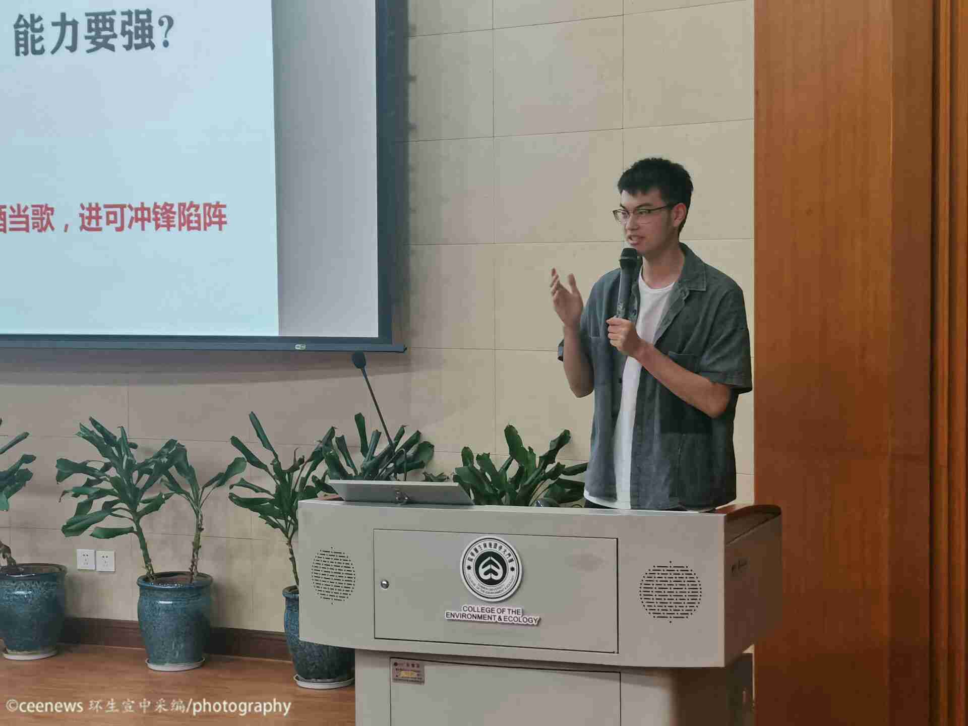 2017级张力丹曾担任我院实践部的负责人,他针对同学们的不同需求,从多个方面阐述了实践的选题、实践的收获等几个大家最关注的点。他将重点放在了实践队伍的评级及后续的答辩和奖项等事宜上,同时对前面几位同学的讲解进行了部分的补充和细化,其丰富全面的内容赢得了同学们的阵阵掌声。