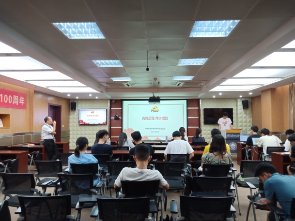 6月2日晚八点半,我院本科生党支部在金泉楼A239会议室开展以“学党史 听党话 跟党走”为主题的“固定党日+”活动。支部以微党课的形式围绕“光辉历程 伟大成就”进行学习与讨论。本次活动支部全体人员共同参加,由支部书记王安胜主持,李玮铖、甘少文主讲。