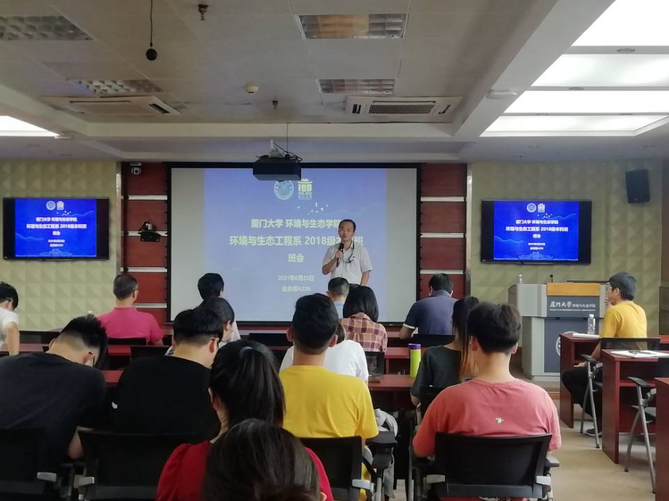 6月25日上午,我院2018级环境生态工程专业本科生班在金泉楼A239召开班会。本次班会围绕环生工专业升学就业情况以及小学期生产实习两方面展开。于鑫教授、欧阳通教授、李杨帆教授、胡宏友副教授、冯明宝副教授、区然雯副教授、张彦隆副教授、辅导员王安胜、实验中心教师闫俊美、黄群腾参与会议。