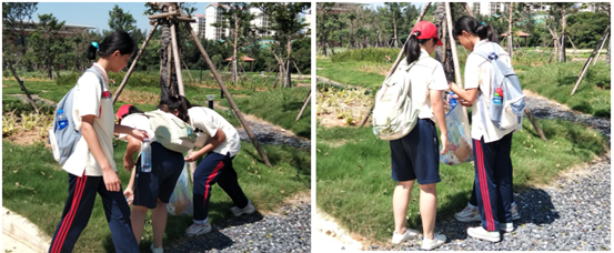 活动第二部分为劳动教育,为了让学生们对植物有更深刻的印象,讲解员们和同学们一起识别植物并挂牌,为植物系上了属于它们自己的靓丽名片。同时讲解员带领学生们自主发起捡垃圾活动,随手带走沿途零星的塑料袋,养成爱护环境、尊重自然的好习惯。