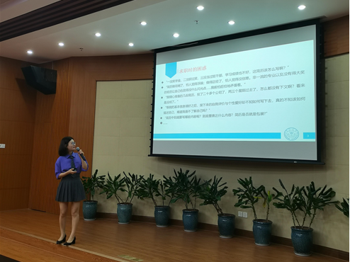 为提升学生的就业求职能力,7月15日晚,我院在金泉楼B103举办了关于简历制作及技巧的讲座。主讲嘉宾是厦门大学学生处-学生就业创业指导中心占群丽老师,来自校区各院的60余名同学参加讲座。