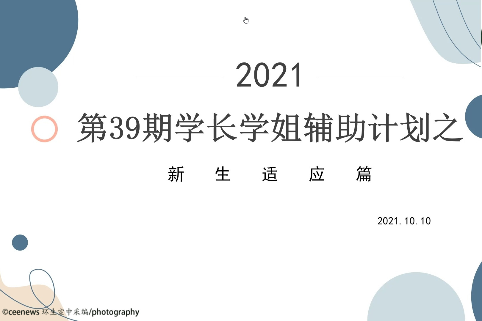 为引导本科新生尽快适应大学生活,10月10日晚七点半,我院依托腾讯会议平台举办了第39期学长学姐辅助计划之新生适应篇。本次活动由发展部胡琪主持,2021级全体本科新生线上参会。