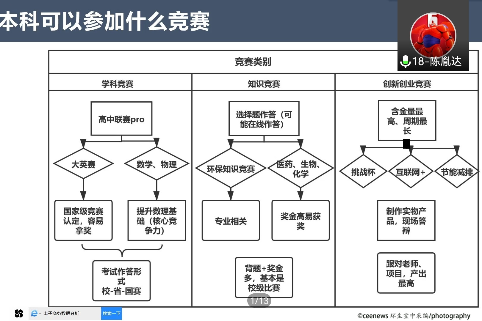 随后发言的是陈胤达,他向同学们分享了自己的竞赛经验,并结合自己的亲身经历讲述了如何参加竞赛以及通过竞赛能获得什么。同时,他将竞赛分门别类,具体细致地介绍了不同竞赛的特点,鼓励同学们积极参加竞赛,开拓视野,增长知识。