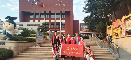 2021年11月12日下午,我院青年志愿者协会组织开展“春芽行动”环保知识宣讲活动, 9名志愿者就“学党史,感恩党”、红树林的保护、垃圾分类、环境与健康、濒危动植物介绍与保护五个主题为厦门市新翔小学四年级学生进行义务宣讲。