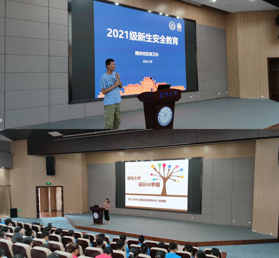 下午也开展两场讲座。校区保卫办的周成明老师,以案说法方式从消防安全、交通安全、防诈骗安全、国家安全等角度为新生们讲解安全规章,加强了新生的安全意识;心理咨询中心的祝婧媛老师,为新生带来了题为“请在大学成长并幸福” 的讲座,从心理学的角度阐述了如何度过有意义的大学生活。