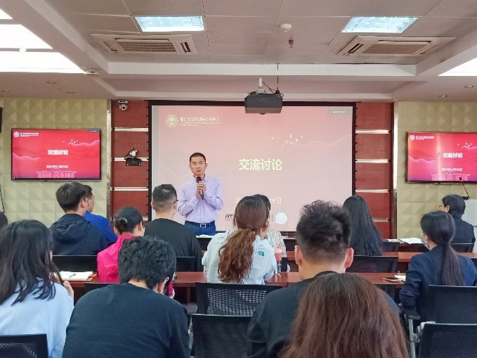 学院党委书记张明智作总结发言。他对决议内容进行了简单的总结概括并指出,学习贯彻十九届六中全会决议和相关精神是我们当前和今后一个时期的重大政治任务,应当在思想上高度重视,行动上积极学习落实。张明智书记肯定了教工党支部、学生党支部联合开展学习活动的方式,认为这样的活动形式不但有利于促进大家的学习劲头,还对增进师生关系也大有裨益。最后,他号召师生党员自觉提高政治理论水平,把政治理论学习内容贯彻落实到学习工作实践当中去,将专业知识的学习、个人前途的发展同国家的前途命运紧密联系在一起,以实际行动担负时代使命,以奋斗之姿态为实现中华民族伟大复兴贡献更大力量。
