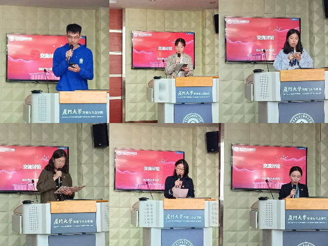 观看学习了专家关于十九届六中全会公报的解读后,本科生党支部预备党员赖子祥、包睿涵,海岸带环境管理研究生党支部党员贾方铭、信佳岐,行政教工党支部党员王新丽、柯晓琳分别发表了自己的学习感悟,交流心得体会。赖子祥认为:“作为一名大学生党员,不仅要学习党的百年奋斗历史,从中汲取智慧力量,更要接好党的接力棒,继承发扬伟大的建党精神和优良传统,强化担当作为,践行初心使命,全心全意为人民服务。”信佳岐表示:“只有看清楚过去的成功之路,才能弄明白未来应该怎么继续走,中国共产党必将带领中国人民在中国特色社会主义新时代取得更加显著的成就!”王新丽认为:“六中全会必定是一个全新的更加辉煌历程的开启,决议必将有利于推动全党增长智慧、推进团结、增加自信、增强斗志,也必将更有利于引导全党全国各族人民更加坚定、更加自觉地践行初心使命,聚焦我们正在做的事情,以更加昂扬的姿态迈进新征程、建功新时代。”柯晓琳表示:“我们要进一步增强四个意识、坚定四个自信、做到两个维护,全面贯彻习近平新时代中国特色社会主义思想,大力弘扬伟大建党精神,更加坚定、自觉地践行初心使命,以昂扬的精神风貌坚守工作岗位,全心全意为师生服务,以脚踏实地的付出,真抓实干的担当助力学院、学校事业发展,为实现创建世界一流大学的目标贡献力量。”