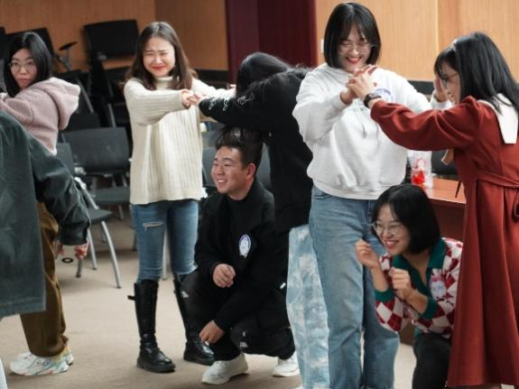 为了让同学们快速熟悉彼此,首先进行了“松鼠、猎人、松书”的集体破冰游戏。通过游戏,快速接近了同学们之间的距离,大家对彼此有了初印象。接着,“数7”和“缘分不打折”通过紧张刺激的趣味脑力运动,快速拉近了参与者之间的距离,取得了理想的游戏效果。