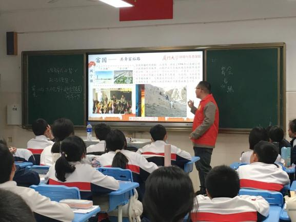 1月6日,我院金璐倩、张坤语、张衡、王维礼等九位研究生前往刘五店中学,围绕生物多样性物种保护、湿地与湿地生物、文昌鱼保护、党史校史四个主题开展知识科普。他们面向初一年级四个班级的学生,通过视频、图片、现场讲解等途径,让同学们了解生物多样性的重要性和湿地具有的良好生态效益,加深同学们对家乡珍稀物种的了解,引导他们积极关注身边的生态环境问题。通过讲述陈嘉庚先生和无数厦大人与中国共产党的不解之缘,激发同学们的爱国热情。