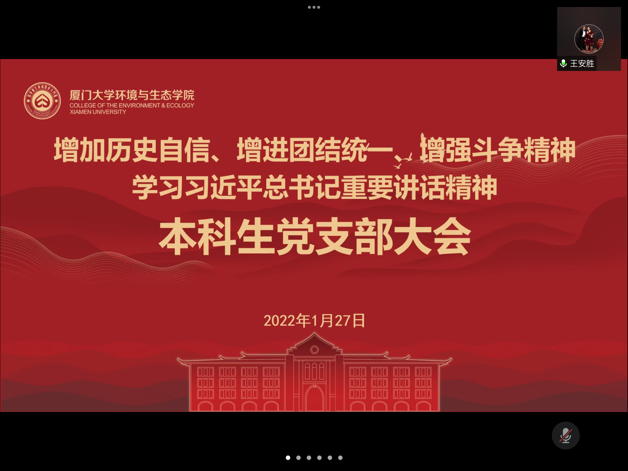 1月27日中午,本科生党支部在腾讯会议平台召开线上支部党员大会开展理论学习。大会通过观看新闻视频、交流心得感悟等方式学习习近平总书记在党史学习教育总结会议的重要指示、在中共中央政治局召开的党史学习教育专题民主生活会上的重要讲话和省部级主要领导干部学习贯彻党的十九届六中全会精神专题研讨班开班式上的重要讲话。本次大会由支部书记王安胜主持,院党委副书记蔡虎堂参加会议并做出总结讲话。