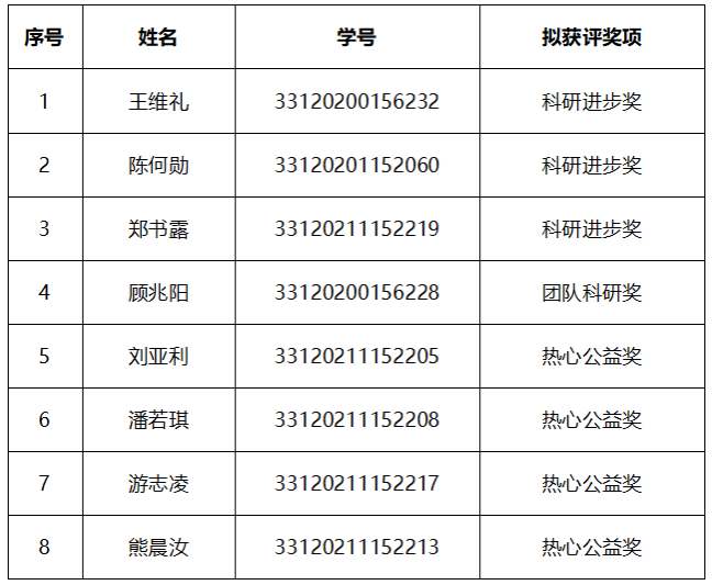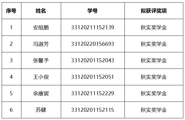 (注意:该奖项评选面向全校,获奖人员由评审小组差额评选,上述为我院推荐名单)