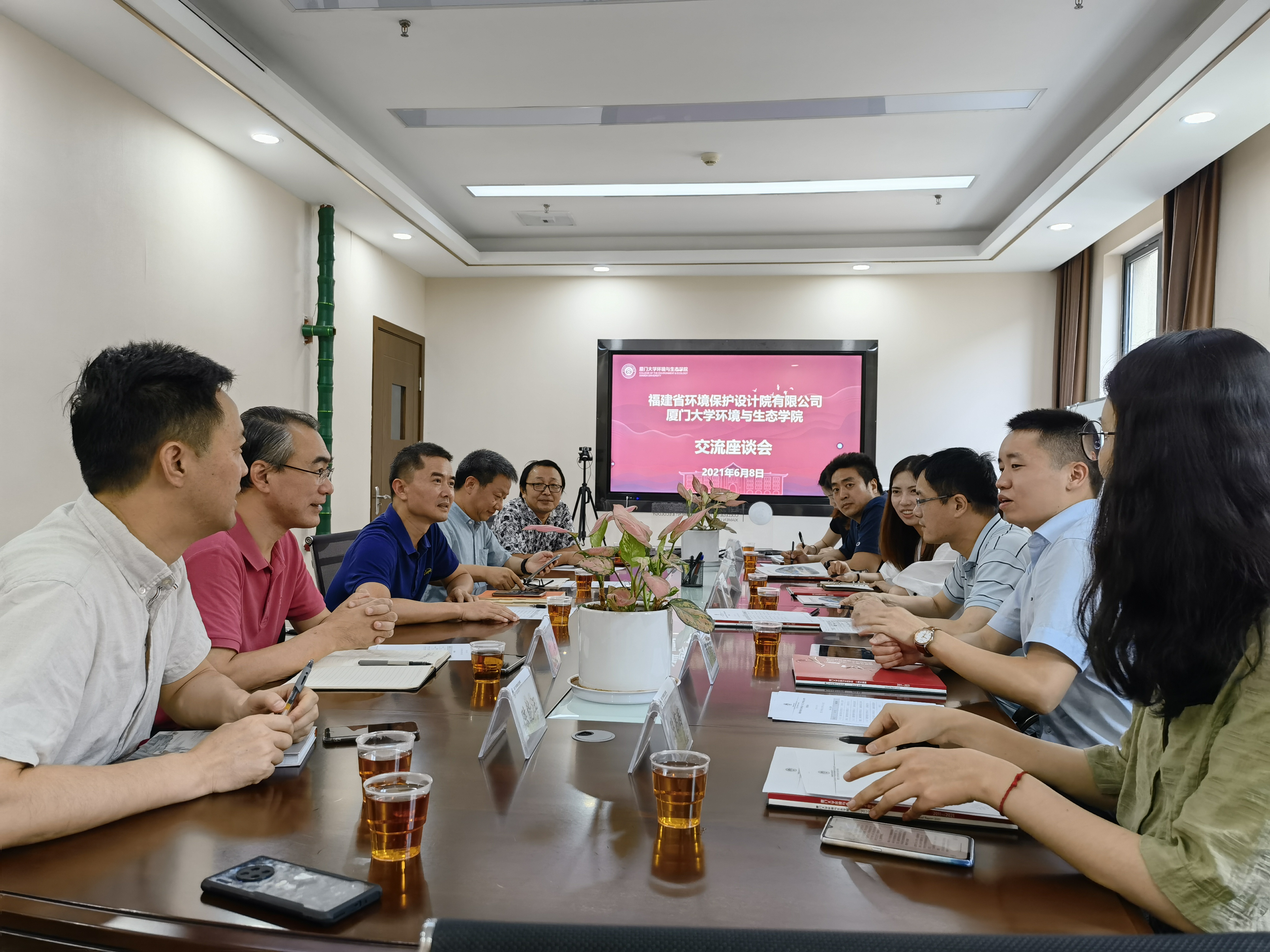 6月8日上午,福建省环境保护设计院有限公司许翔总经理一行到学院并共商校企合作,学院党委书记张明智、副院长曹文志、境科学系主任陈能汪、环境与生态工程系主任于鑫等参加座谈交流。