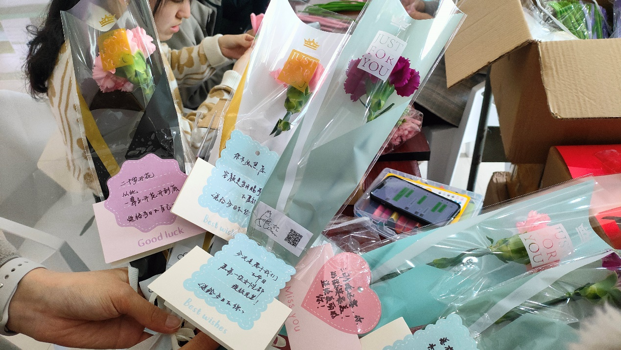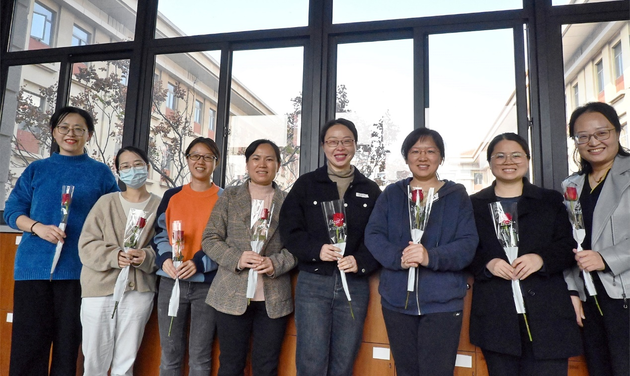 妇女节期间,学院还为女教师和金泉楼女性物业工作人员分别送上玻璃花瓶、香囊或玫瑰花,向她们致以最诚挚的节日祝福。收到礼物的女同胞们,都被这份惊喜所打动,她们的笑容如春日的花朵般绽放,幸福感溢于言表。