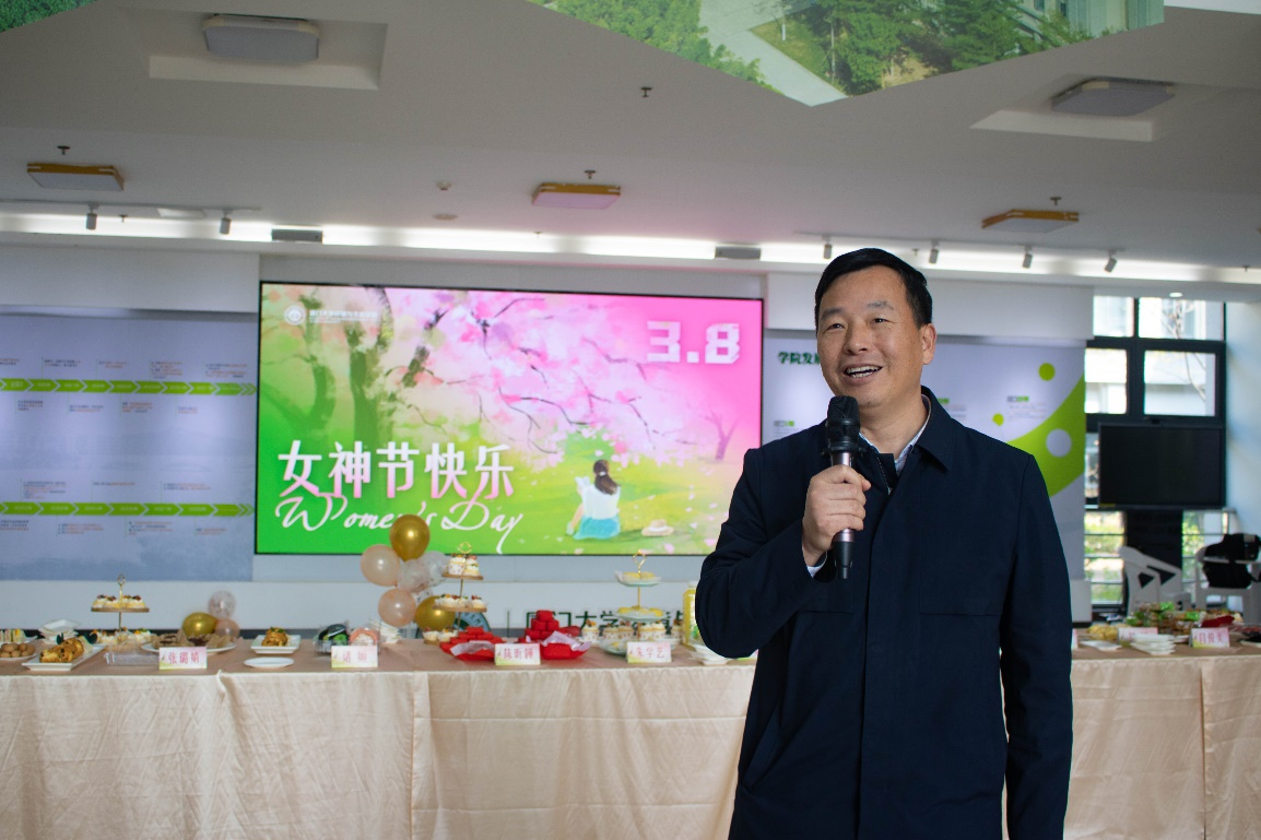 院长吕永龙代表学院向女教职工表示祝福,对环生院女同胞们兼顾家庭事业、积极投身立德树人、不断推动学院建设发展所作出的贡献表示衷心的感谢。他希望学院妇委会进一步团结引领学院女教工走在时代前列,以更加奋发有为、积极向上的精神风貌,在创新创一流的第一线建功立业,共享新时代美好生活。