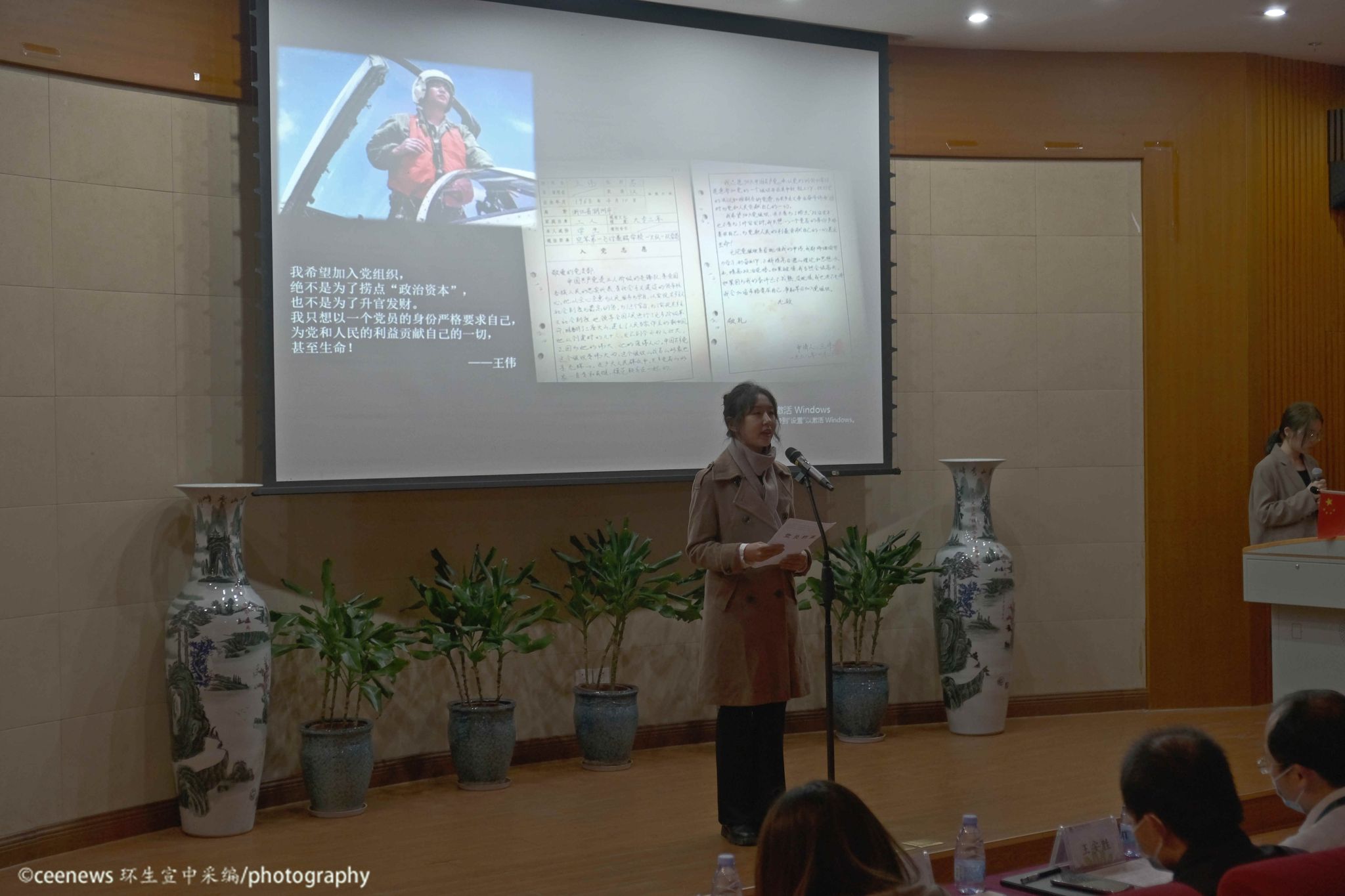 最后,2021级硕士第二团支部用情境朗诵的表演形式向观众们展示了烈士陈占芳、“海空卫士”王伟以及新时代中青年学子的入党申请书,表达了疫情防控常态化的当下,青年学子愿在抗击疫情岗位上勇挑重任,敢当先锋的决心。