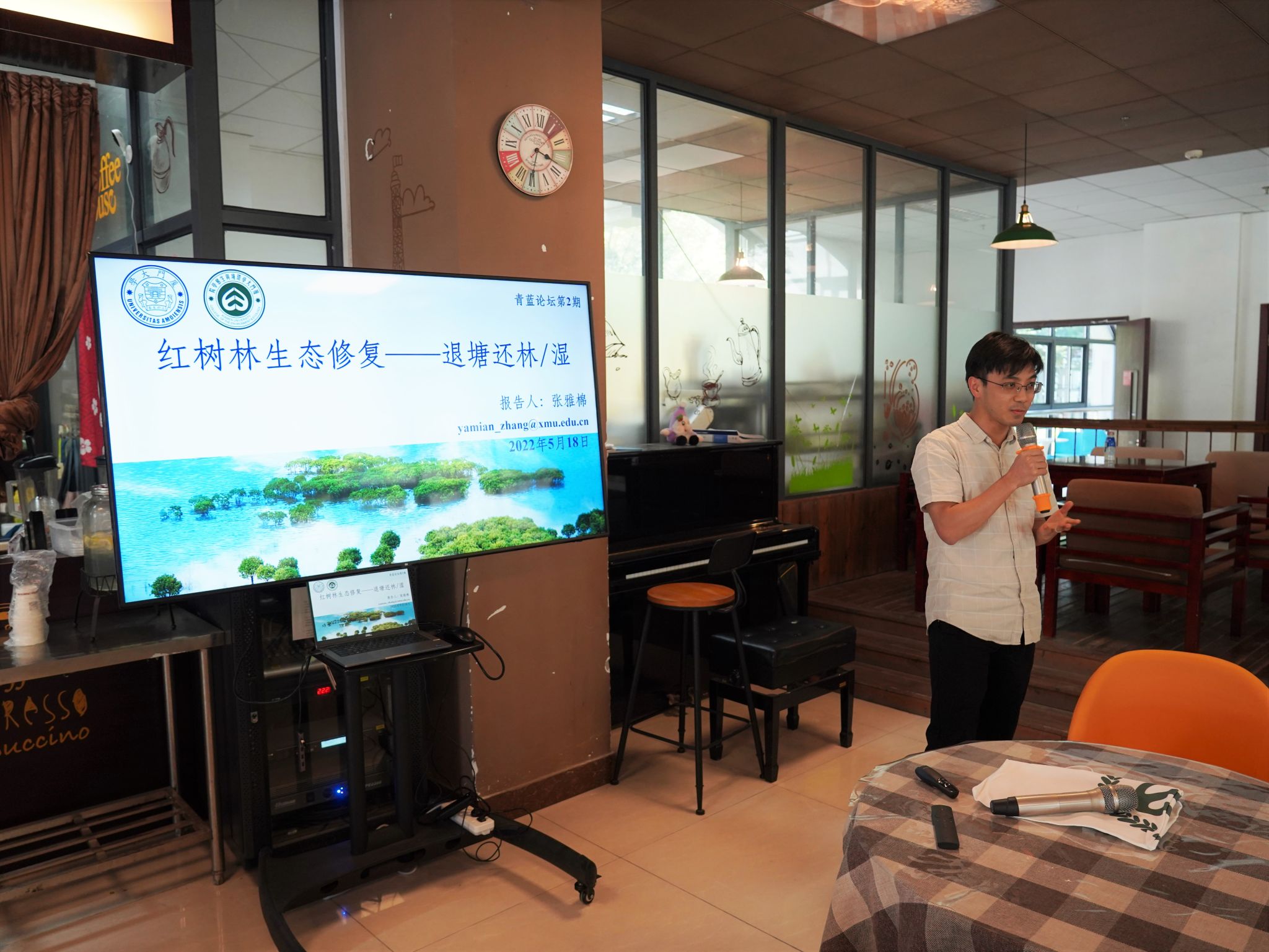 5月18日下午,我院以青年学者为主角的特色学术交流活动——青蓝论坛第二期,在学院咖啡厅圆满举办。本期论坛由张雅棉高级工程师为大家带来题为“红树林生态修复——退塘还林/湿”的学术报告,论坛吸引了数十名青年教师、研究生参加。