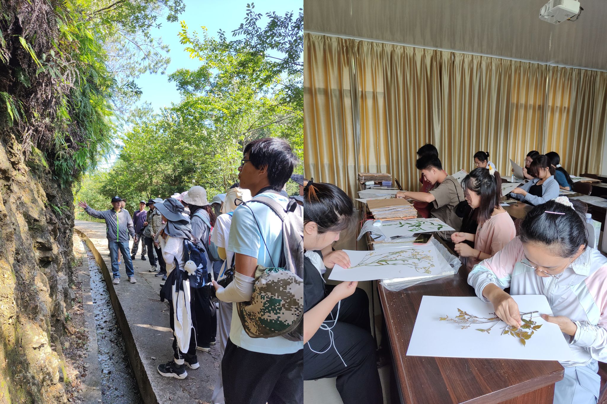 在三天的实习培训过后,随着汽车缓缓驶进崎岖的山路,同学们来到了实习第一站福建君子峰国家级自然保护区。按照出发前组织好的队伍分为A、B两组,分别于三天之内完成君子峰常见植物识别、山地植被调查、森林植物群落调查、鸟类识别与夜观,学习土层结构与地理构造以及采集植物与昆虫标本。在君子峰实习的最后两天,同学们投入到了忙碌的标本制作环节,在此期间,课堂所学的植物分类学知识得到了实践运用,共制作300余件植物标本。同时各组队员也学习和掌握了昆虫17个目的鉴别方法,并制作了昆虫标本70余件。