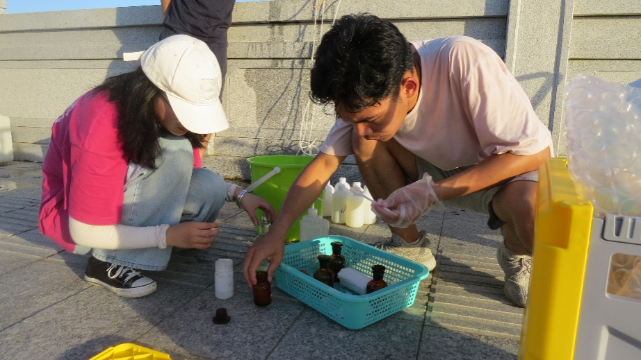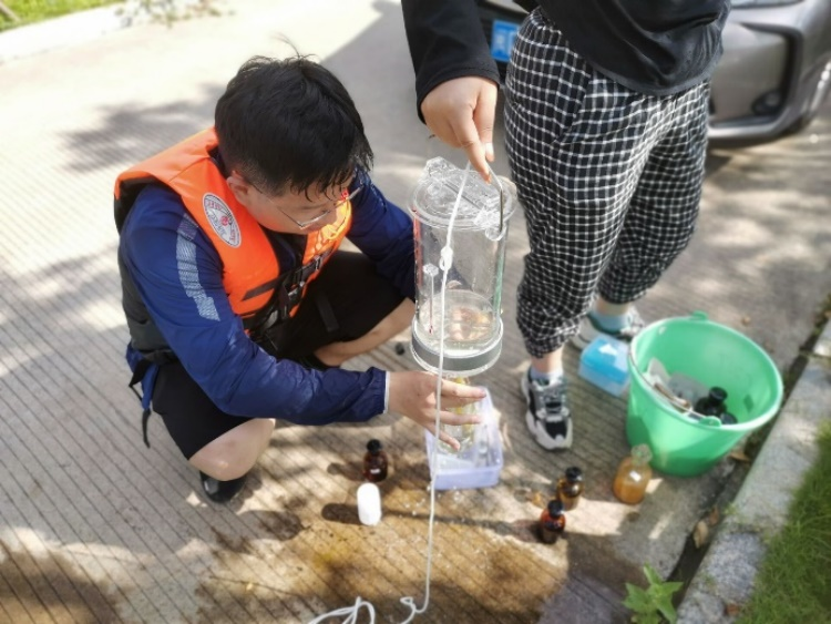水质组于7月11日上午8点和下午5点对校园22个站点进行2次水质调查,分析内容包括9个物理指标、5个化学指标和6个生物指标,并以此研究湖区水质的时空变化特征和规律,提出校园湖库水质提升改善方案。大气组基于2018-2020年翔安区大气质量的数据调查,结合实际情况选定4个校园大气监测站备选站点,并于7月11日对相关大气指标进行监测,以此提出校园环境空气质量自动监测站的优化方案。生态组于7月8日下午前往校园南侧林地进行样方调查获取基础数据,结合无人机调查计算林地碳汇,并据此提出校园林地碳汇提升设计方案。同时,小组成员对漳江口国家级红树林保护区的调查数据进行整理分析,运用相关指数分析其群落多样性以及不同红树物种、底栖生物的分布格局。