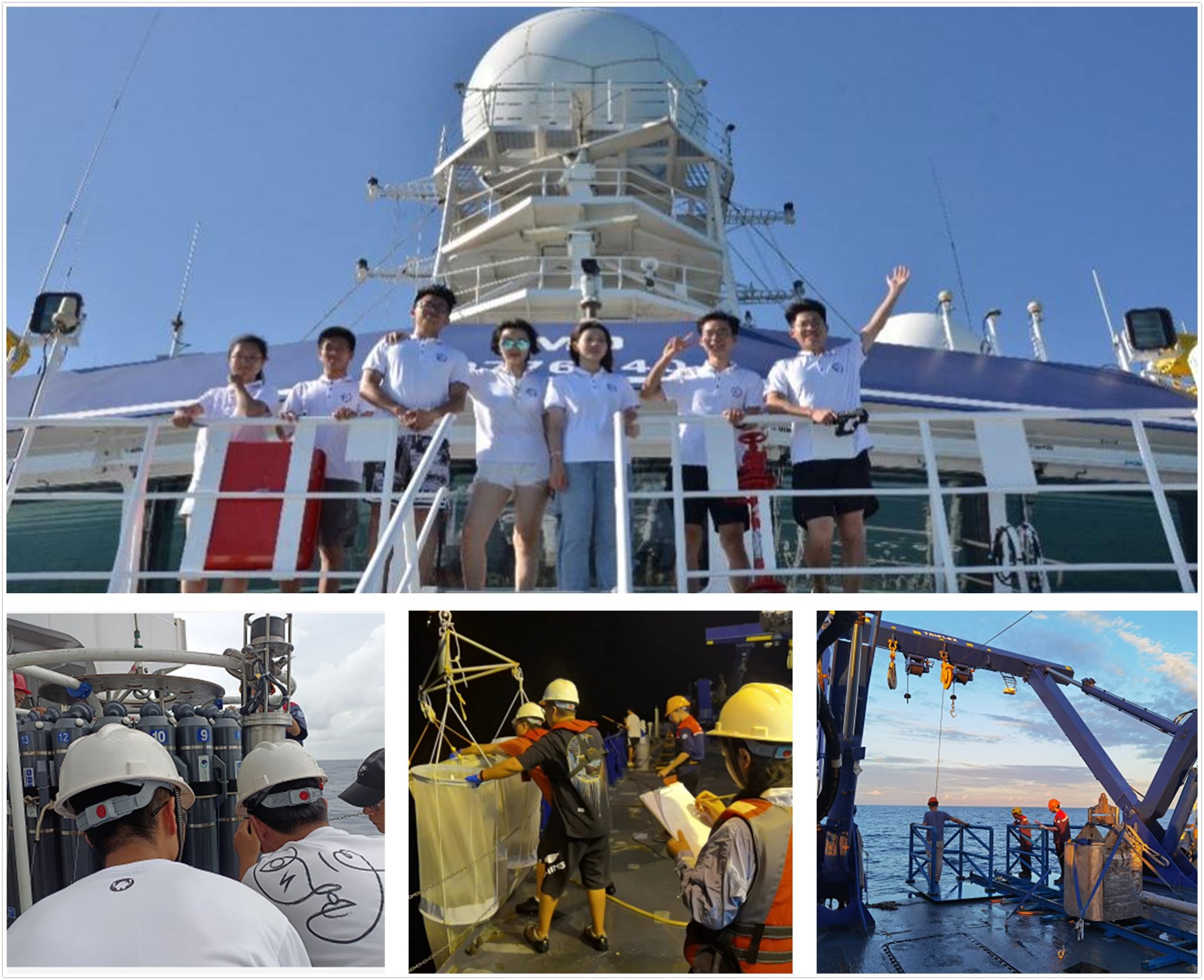 2022年8月14-18日,来自厦门大学、厦门大学马来西亚分校的33名师生顺利完成了“海丝学堂”人才培养计划第二航段“厦门—南海北部—厦门”的海上科学实践调查。我院本科生黄宇宁、陈少聪、李嘉杰、李叔岳、冯乐妍、安轶阳、曾樱芝参与了海洋化学组和海洋生物组的调查工作。7名同学第一次登上“嘉庚”号引发的生理挑战也不能阻挡同学们的热情,他们充分发挥自身专业优势,与其他学院的同学通力合作,顺利完成了各项任务。拖网作业中细致的筛拣和对提取出的深海沉积物的耐心分析都得到了随行老师的肯定。在忙碌的工作中同学们也能找到特别的乐趣,无论是彻夜实验时看到的成群的海豚,还是通宵采样结束后的日出彩虹,抑或是日出时的浮光跃金和尚未隐去的一轮明月,都将成为几位同学珍贵的记忆。
