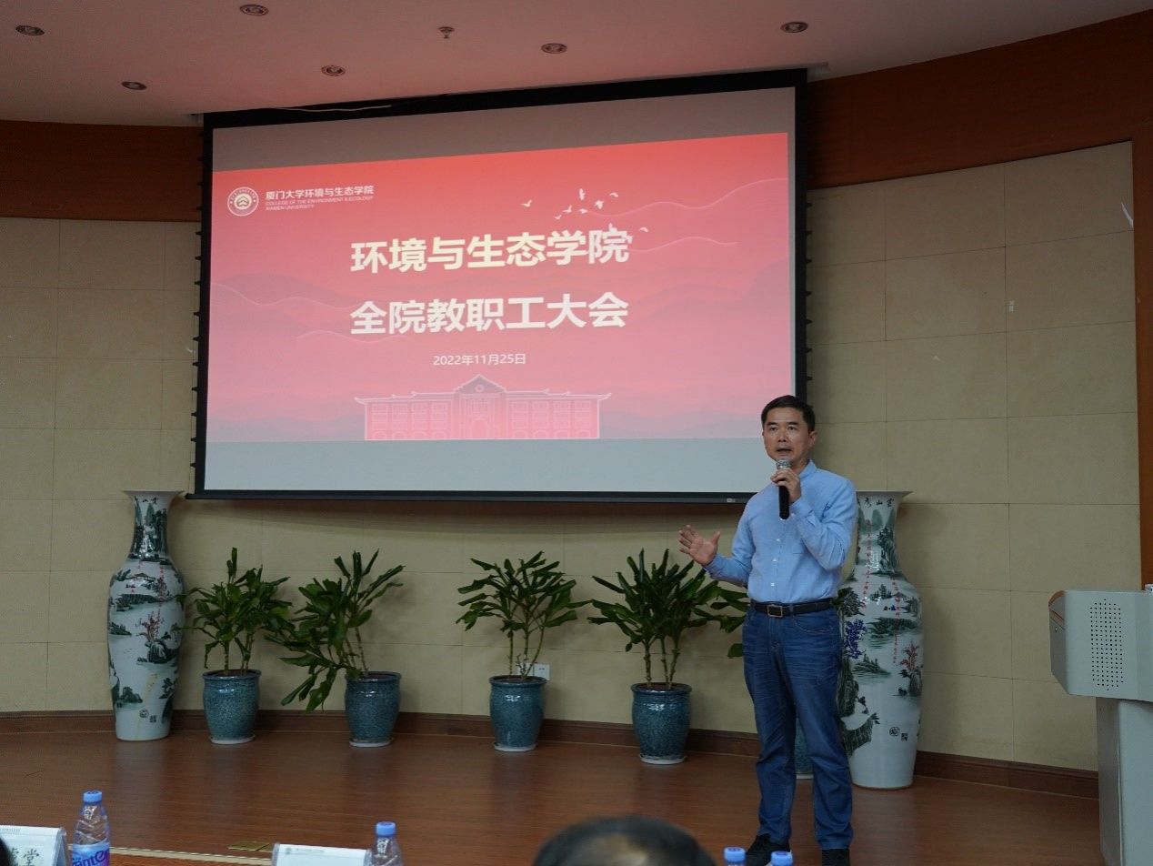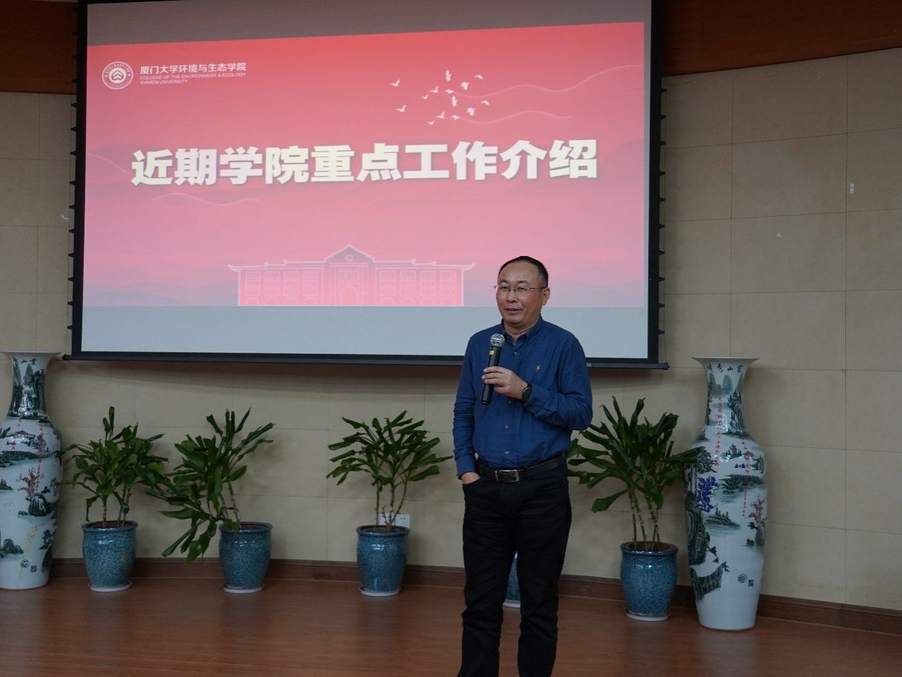 吕永龙院长对学院近期重点工作进行介绍和部署。他表示,第一要继续加大引才力度。他横向对比了学院与其他兄弟高校的人才数量和质量的差距,强调高层次人才引进的紧迫性和重要性,学院要进一步营造良好的工作环境、氛围,完善激励机制支持人才成长,培养更多优秀青年人才,建设一流队伍。第二要强化人才团队建设,凝聚学科共同体意识,促进学科融合发展。努力形成一批有创新力、凝聚力和影响力的科研团队,树立远大目标,基于科研大平台产出更多高质量科研成果。第三要用好工程技术人员这支队伍。优化工程技术人员和科研人员的合作模式,大力提升科研水平,推动学院全面发展。第四要提升社会服务能力。学院教师不仅要对内加强合作,而且要走出学校,与更多科研团队和企业进行合作,积极参与重大项目,主动传播厦大环生“声音”,提升学院知名度和影响力。第五要树立强烈的集体荣誉感,持续提升环生凝聚力。充分发挥党建带动性和引导性,学院工会要通过组织一系列文体团建活动,增强教职工的凝聚力和战斗力。