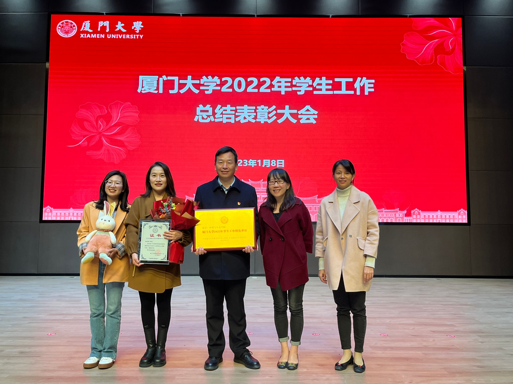 1月8日,厦门大学2022年学生工作总结表彰大会在翔安校区西部片区3号报告厅举行。校党委副书记徐进功、机关部处领导以及全校学工干部参加了会议。本次大会的主题是“学习贯彻党的二十大精神,矢志建设双一流,合力谱写新时代学生工作新篇章”。