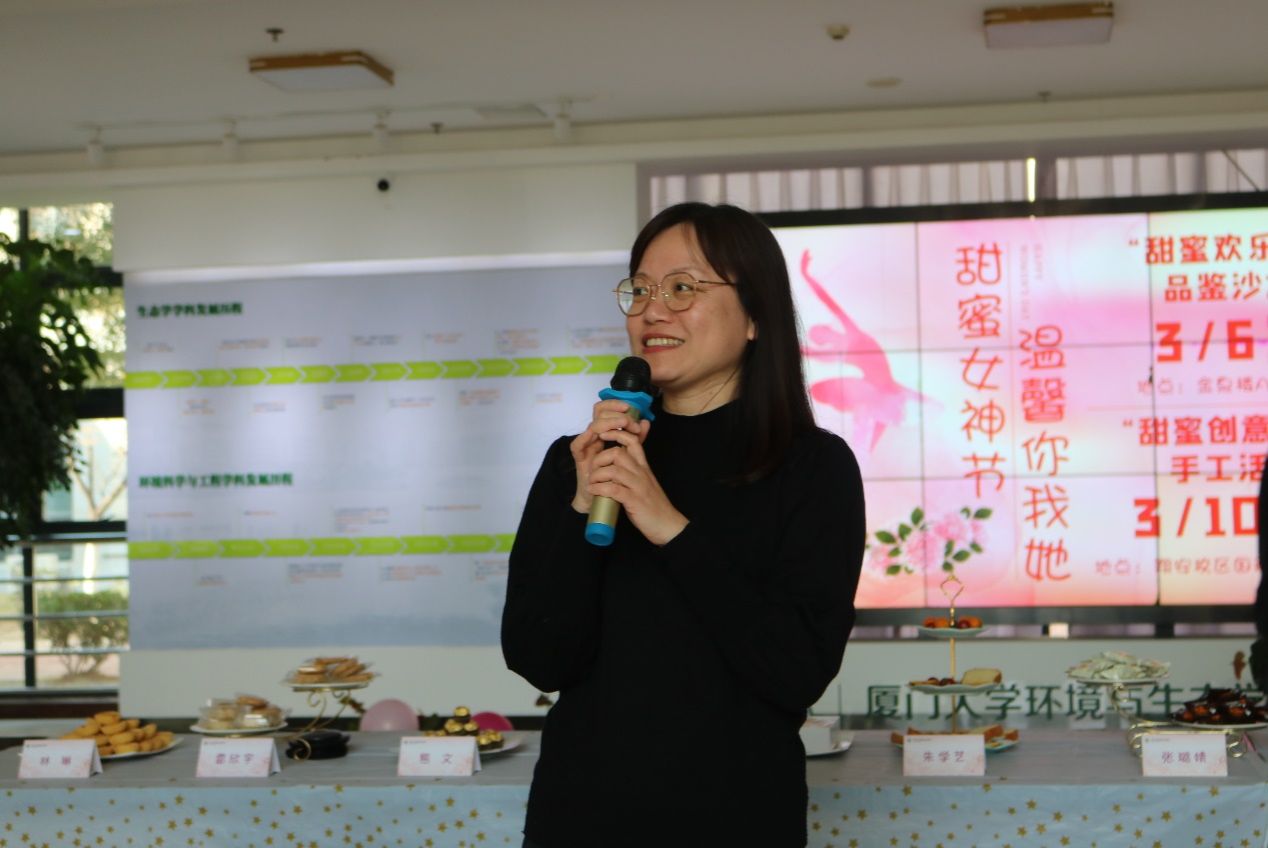 阳春三月,万象更新,百花争艳。为纪念第113个“三八”国际妇女节,让全体女教职工过一个健康、和谐、快乐、温馨的节日,3月6日下午,学院工会、妇委会和办公室在金泉楼大厅联合举办“甜蜜女神节,温馨你我他”美食品鉴沙龙,吸引了学院女教工们的踊跃参与,男教工也纷纷到场送上祝福、共享美食。沙龙由学院妇委会主任陈鹭真主持。