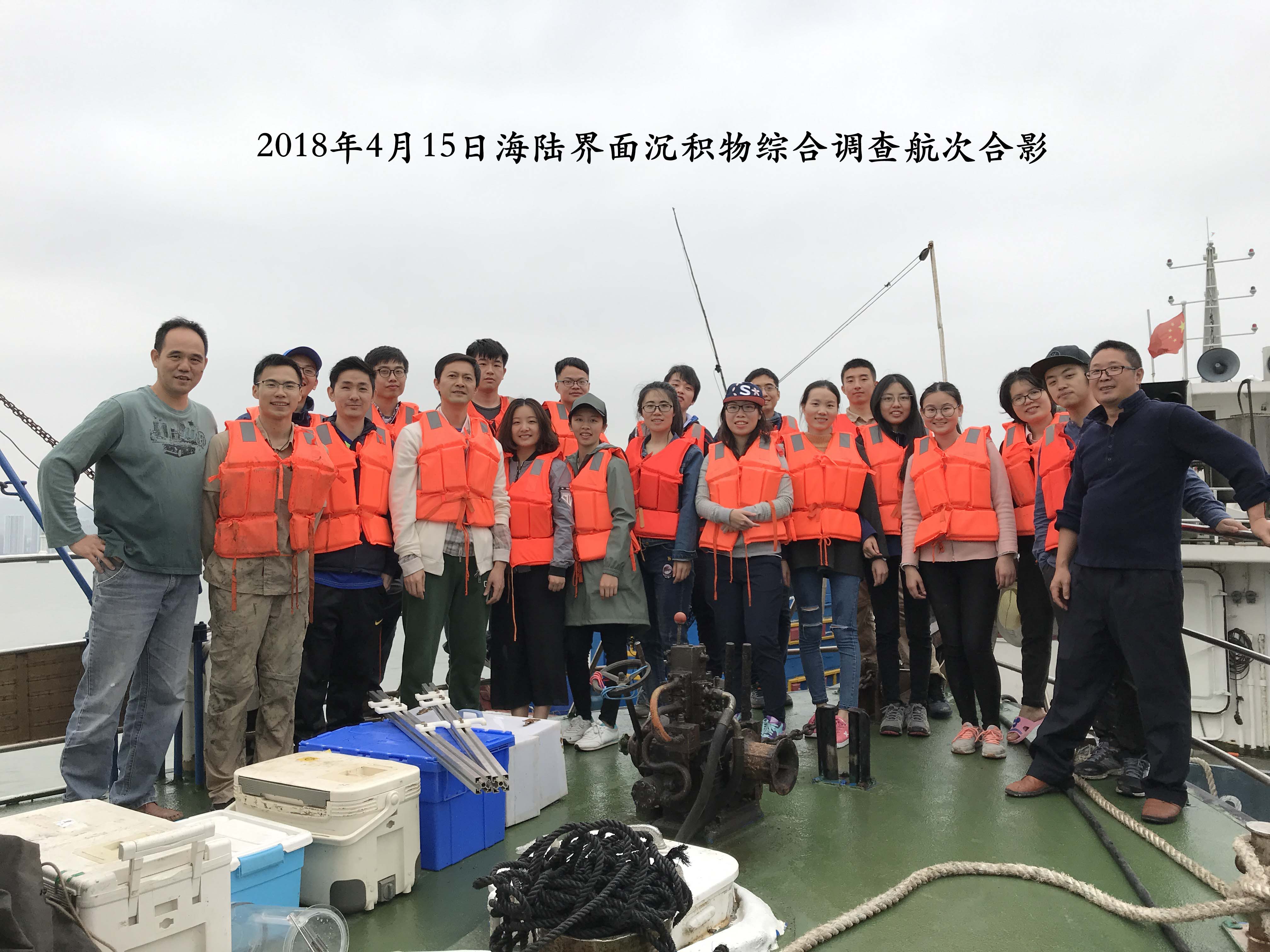 2018年4月15日,我院海陆界面研究团队组织实施九龙江口沉积物综合调查航次,来自环境与生态学院、海洋与地球学院、中科院城市环境研究所9个课题组(陈能汪、王新红、谭巧国、陈猛、陈荣、蔡立哲、孙萍、余凤玲、胡安谊)20名师生参加。利用厦门大学海洋2号科考船在九龙江河口中港和北港浅水区域开展现场观测和取样,采集了11个站位表层沉积物、水和生物样品。航次目的是推进海陆界面环境、生态、海洋等学科的交叉与创新研究,研究内容涉及颗粒沉积动力、营养盐循环、重金属和有机污染、底栖大、小、微型动物、环境微生物生态等。