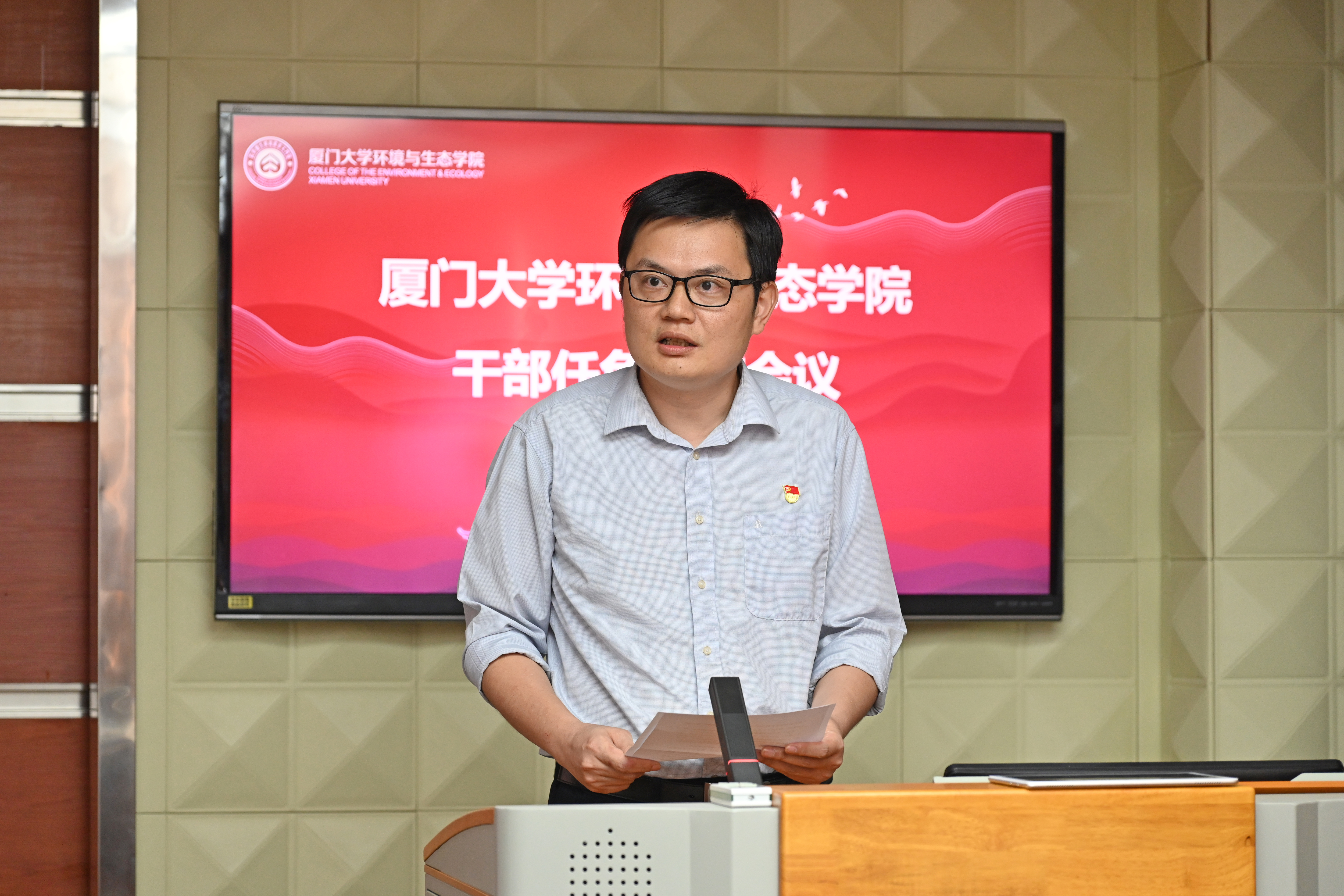 林东伟代表校党委宣读环境与生态学院干部任免决定:王晟同志任环境与生态学院党委副书记,主持学院党委工作;张明智同志不再担任环境与生态学院党委书记职务。
