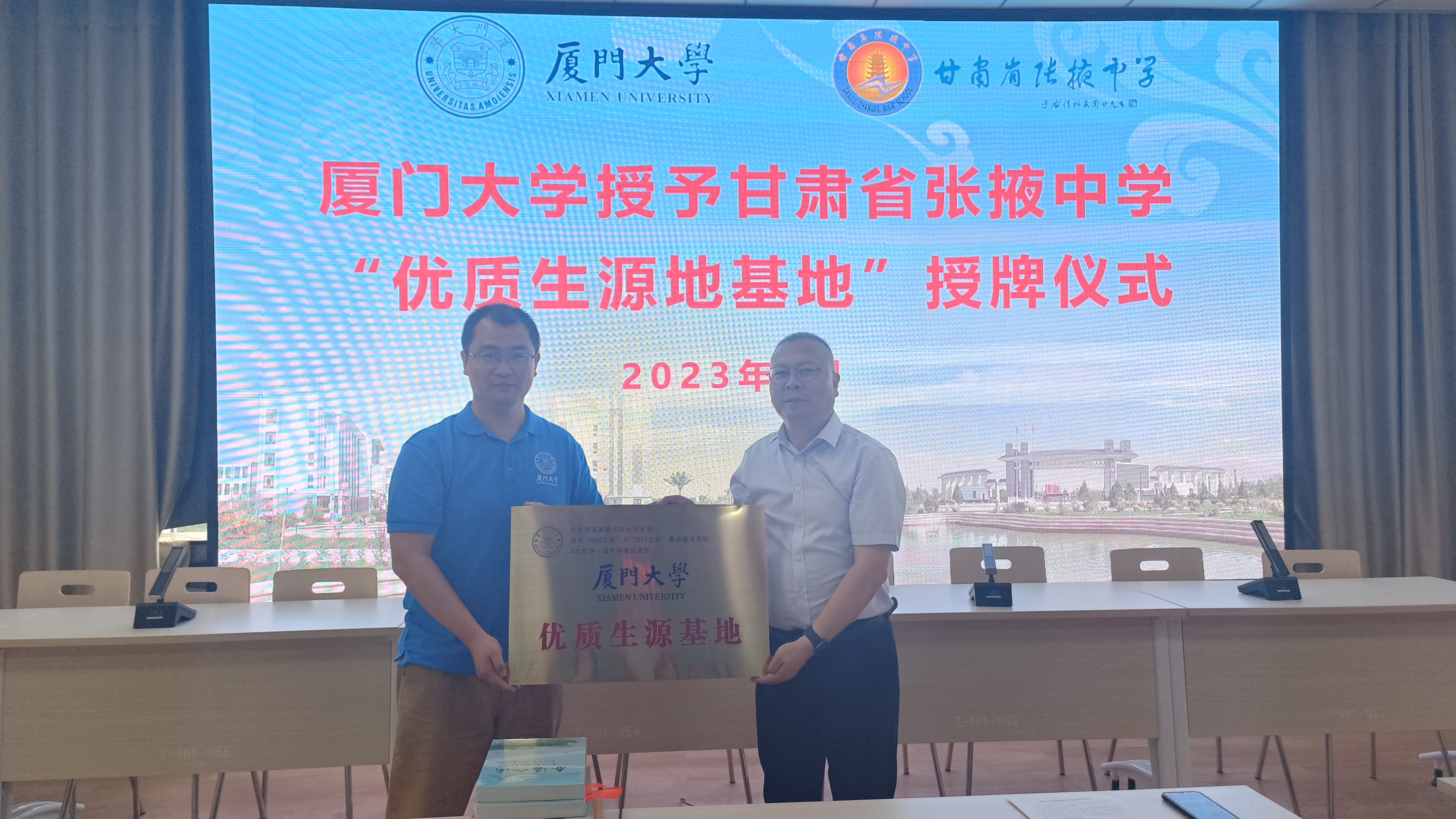 20日和23日,招生宣传工作组分别在定西一中、张掖中学举办“厦门大学优质生源基地”授牌仪式,马剑向各中学赠送厦大百年校庆系列出版物的部分书籍、《春潺入海——厦门大学环境科学的成长》及相关招生材料。中学有关负责人和老师就厦门大学办学情况、生源特点、招生政策等进行咨询和交流。双方表示,将以授牌为契机建立常态化合作关系,进一步深化交流,共同培养更多优秀人才。