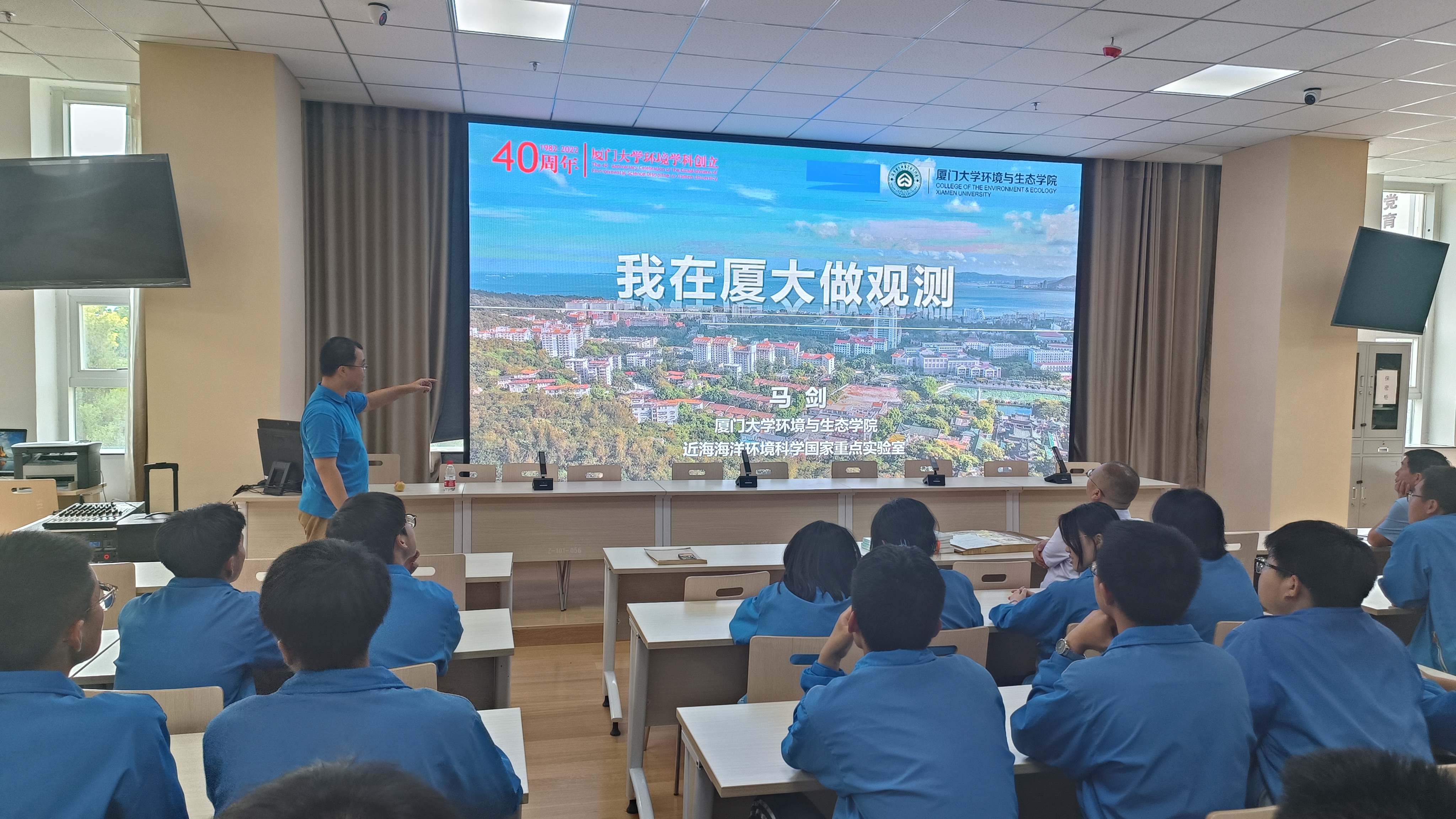 同时,马剑作“我在厦大做观测”主题科普讲座。他以海洋科学考察的亲身经历,详细介绍了环境分析化学、海洋观测技术等方面的研究和进展。他强调,碳中和背景下的海洋观测技术既是机遇也是挑战。马剑教授风趣幽默的语言和详实的案例引发在场师生的强烈共鸣,同学们积极提问,气氛热烈。讲座开阔了同学们的学科视野、拓宽了学习思路,对激励同学们奋发学习起到了良好的引导作用。