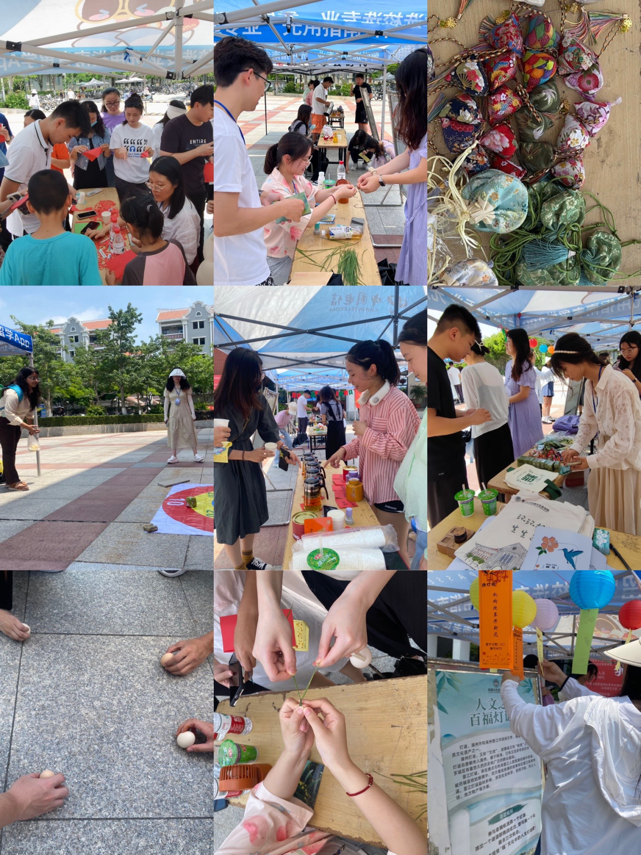 饮食之福--舌尖品“福”,闻茶香,观茶汤,品茶味,同学们体会深厚悠远的闽茶文化。非遗之福--巧手送“福”,剪纸与端午,非遗技艺与传统节日的碰撞,寄托着同学们阖家团圆、端午安康的愿景。人文之福--百福灯谜馆,五色灯笼吸引无数目光,感受端午特色谜题。民俗之福-竖鸡蛋、点雄黄,午时竖鸡蛋以祈好运,毛笔点雄黄以祛五毒,送上最美好诚挚的祝福。生态之福--斗百草,巧妙结合生态与民俗,让参与者们寓教于乐,融学于趣。