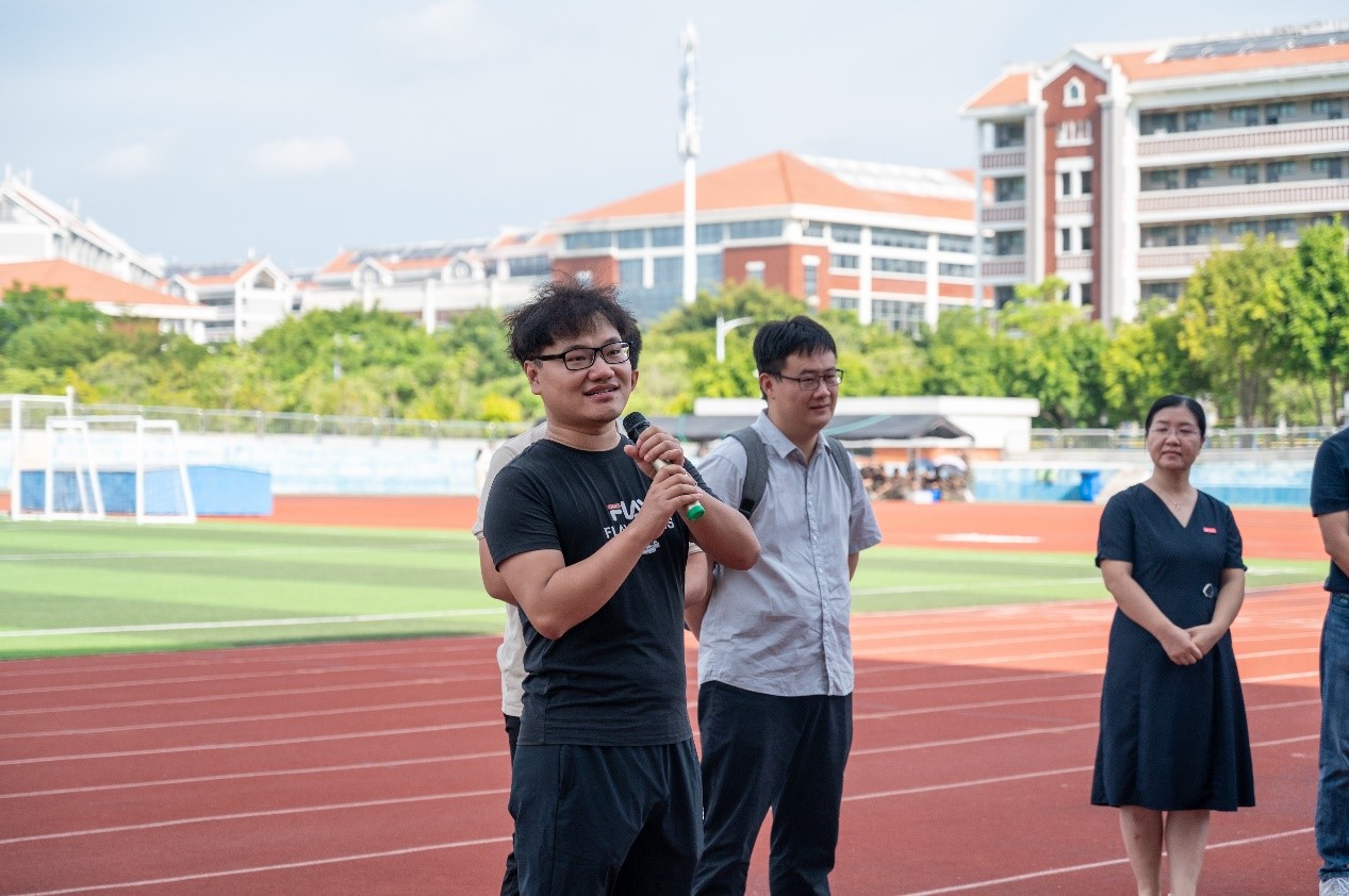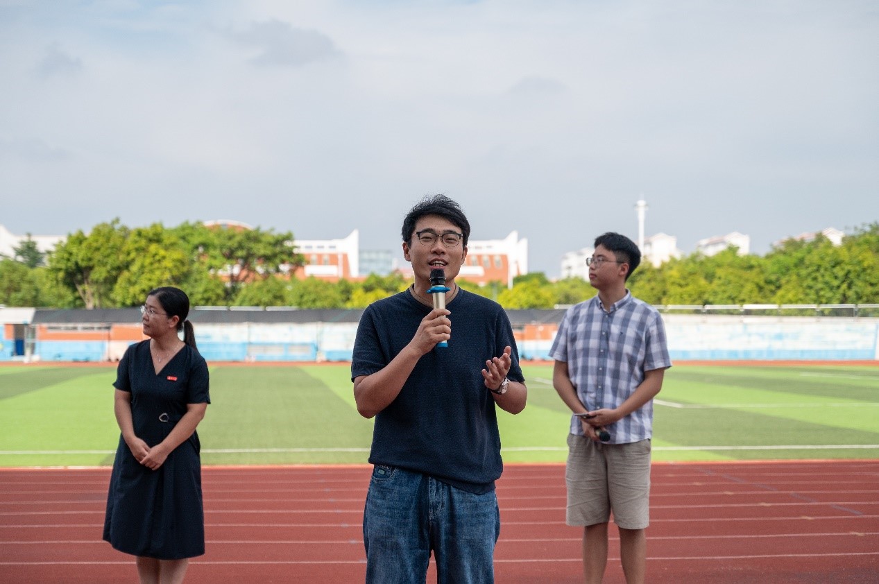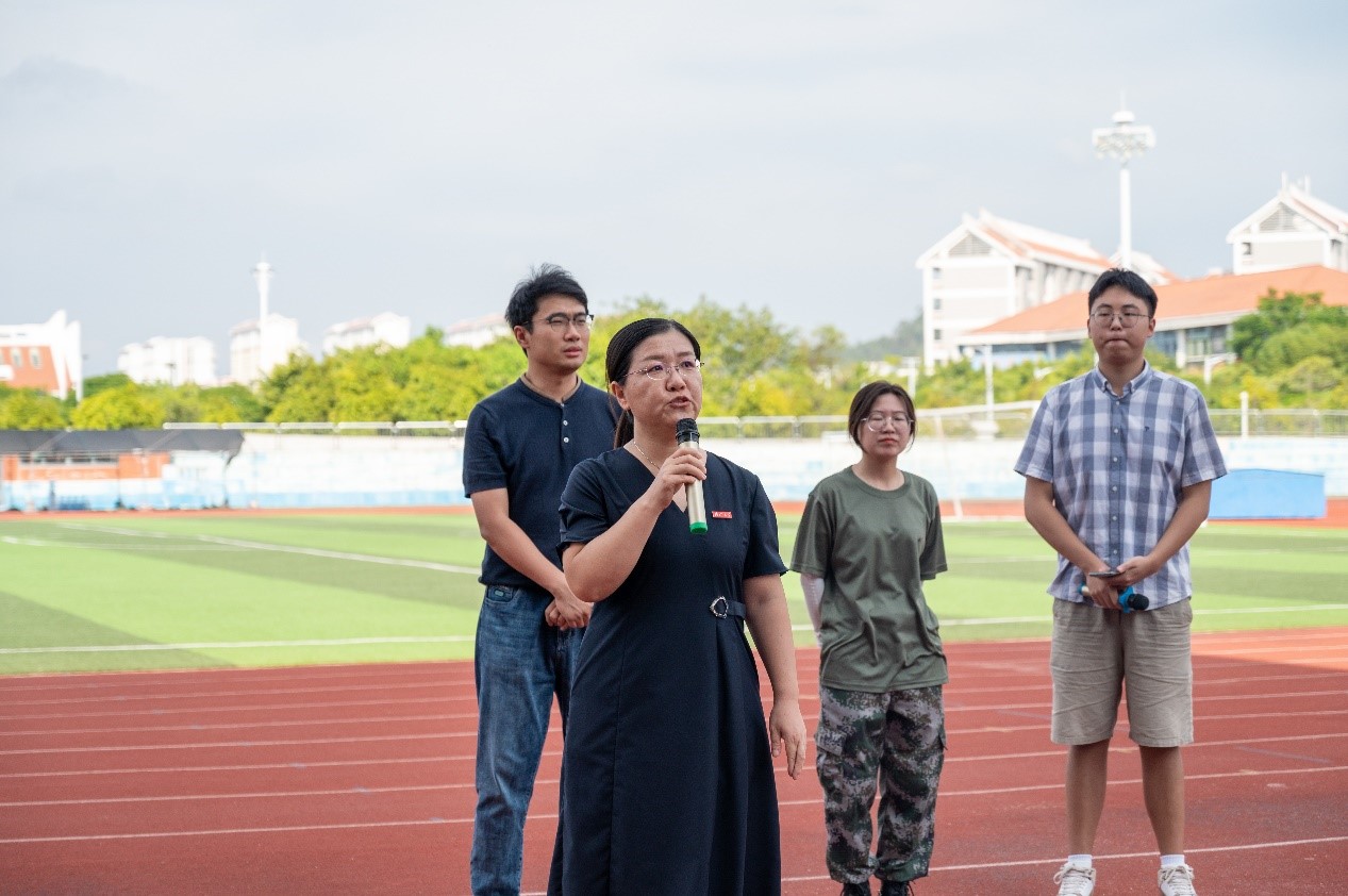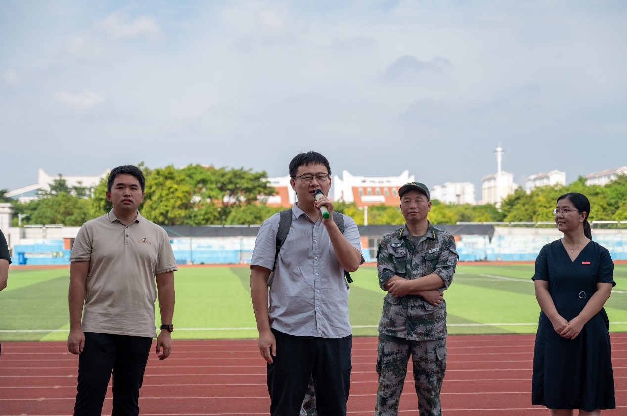 9月15日上午,学院在翔安校区田径场开展军训慰问活动。学院党委书记王晟、副书记蔡虎堂、副院长于鑫,系主任林晓凤、张彦隆以及新生班主任、辅导员及学生代表一同来到军训场地,为2023级新生送去关怀和慰问。活动由2021级本科生钟欣洋主持。