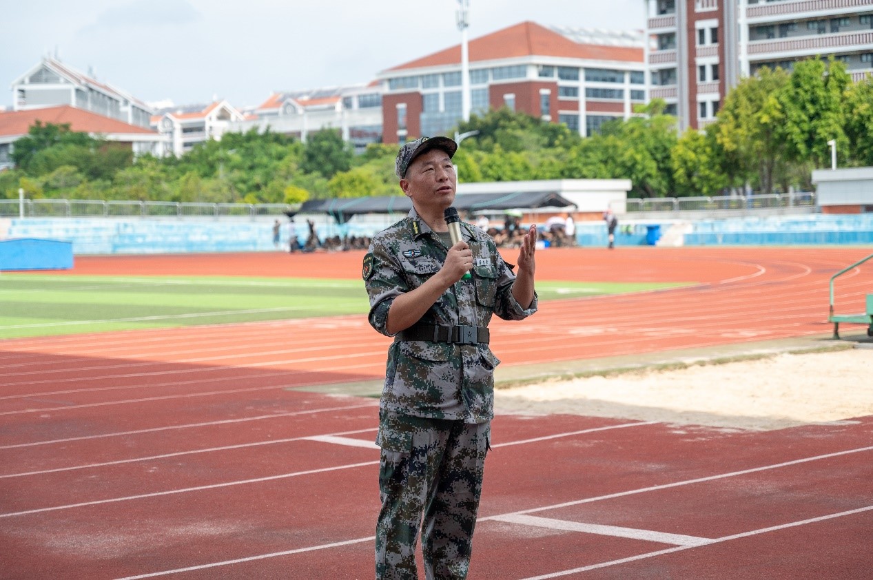 于鑫分享了自己在南京军区军训的故事,鼓励同学们利用军训接受国防教育,培养自强不息的坚韧品格,同时叮嘱同学们训练过程中注意安全,避免受伤。