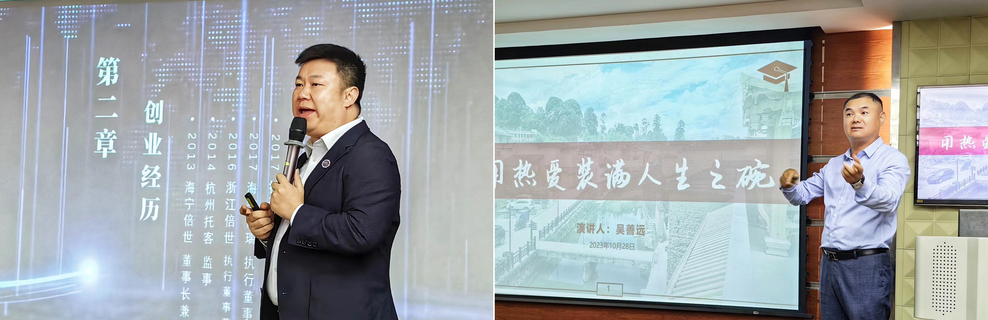 美国邦登净水中国区总经理吴善远以“用热爱装满人生之碗”为题,从另外一个方面分享了企业家创业的心路历程。 “热爱祖国、热爱家乡、热爱父母、热爱生活” 诠释了吴善远创业的基本原则。正是“热爱祖国”之心,促使吴善远决心办企业,要将最好的产品引到中国。正是“热爱家乡”之心,促使吴善远决定回到贫穷落后的家乡,继续创业,助力乡村振兴。企业家朴素的家国情怀和赤子情怀触动了同学们的心灵深处。