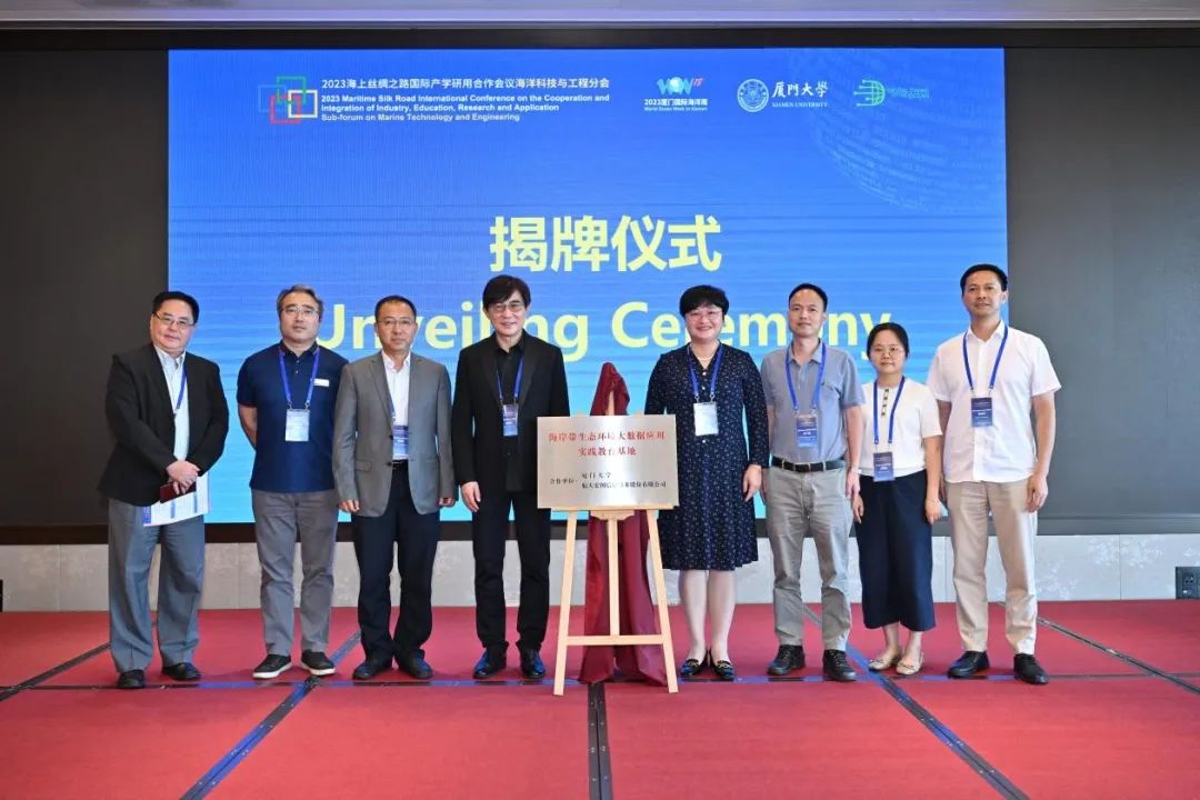 开幕式后,我校戴民汉院士和航天宏图信息技术股份有限公司高校部总监李彦为海岸带生态环境大数据应用实践教育基地揭牌。该基地由学校和航天宏图信息技术有限股份公司共同建设,通过校企合作,整合双方资源成果,致力于开发海岸带与海洋可持续发展时空大数据实习实训平台,推动新时代海岸带生态环境大数据应用高层次人才培养。