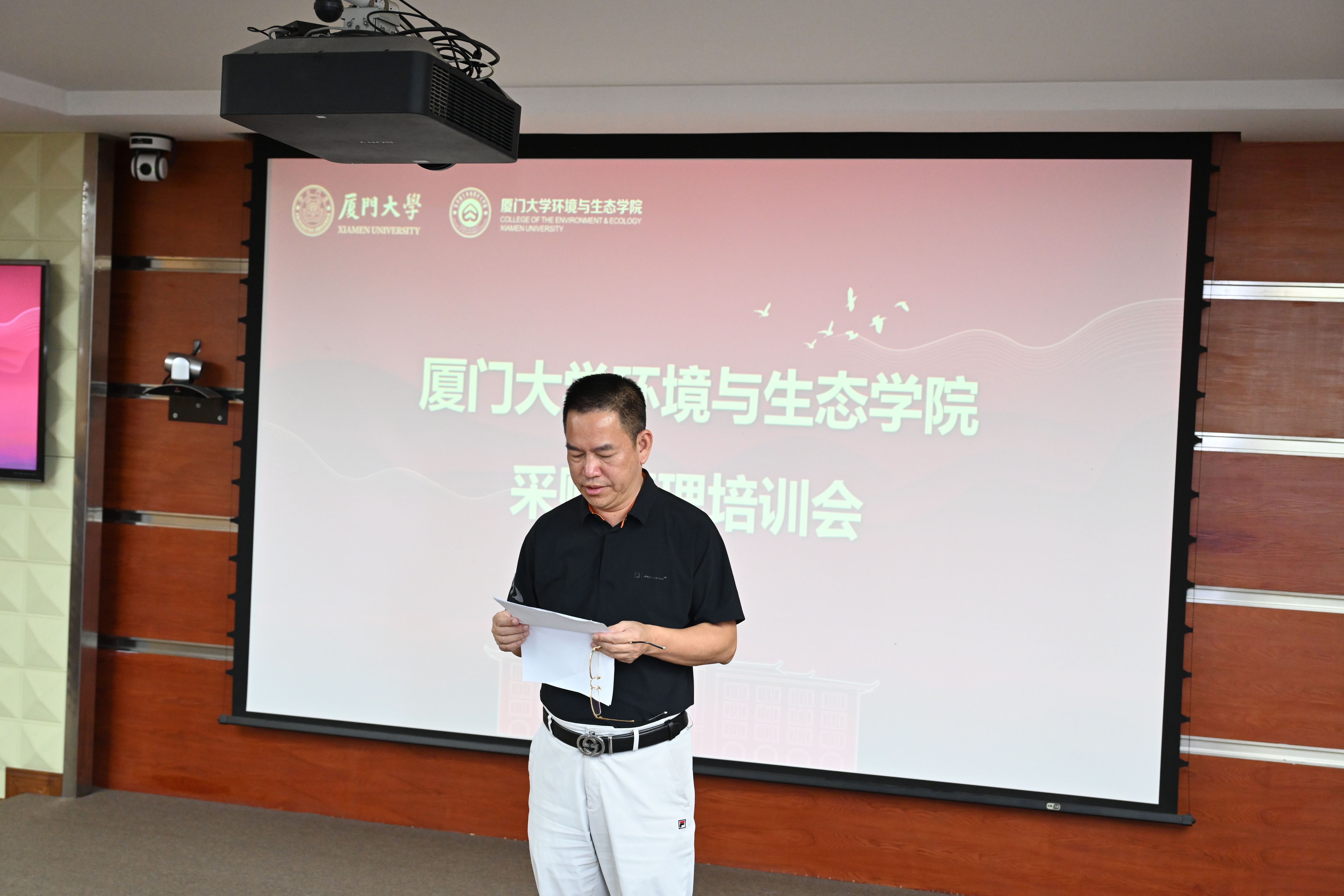 随后,资产与后勤事务管理处物资科科长陈顺源从采购总体介绍、采购项目工作准备、采购环节注意事项、采购合同签订等四个方面对学校采购管理工作进行介绍和解读,学院后勤秘书赖丽旻汇报了目前学院采购管理情况。